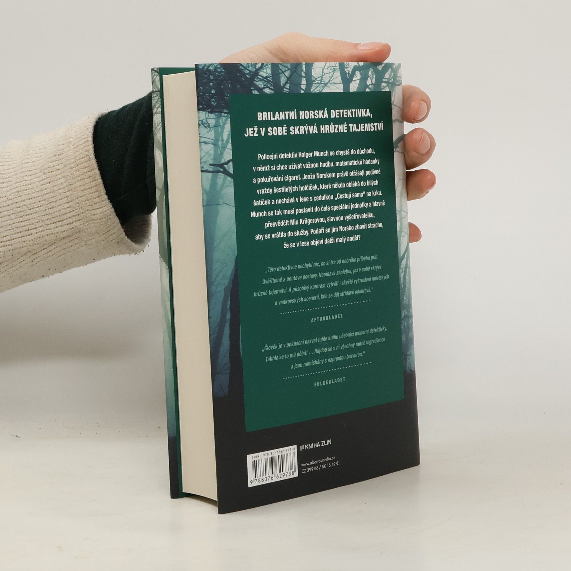 Brilantní norská detektivka, jež v sobě skrývá hrůzné tajemství. Policejní detektiv Holger Munch se chystá do důchodu, v němž si chce užít vážnou hudbu, matematické hádanky a pokuřování cigaret. Jenže Norskem právě otřásají podivné vraždy šestiletých holčiček, které někdo obléká do bílých šatiček a nechává v lese s cedulkou „Cestuji sama“ na krku. Munch se tak musí postavit do čela speciální jednotky a hlavně přesvědčit Miu Krügerovou, slavnou vyšetřovatelku, aby se vrátila do služby. Podaří se jim Norsko zbavit strachu, že se v lese objeví další malý anděl?