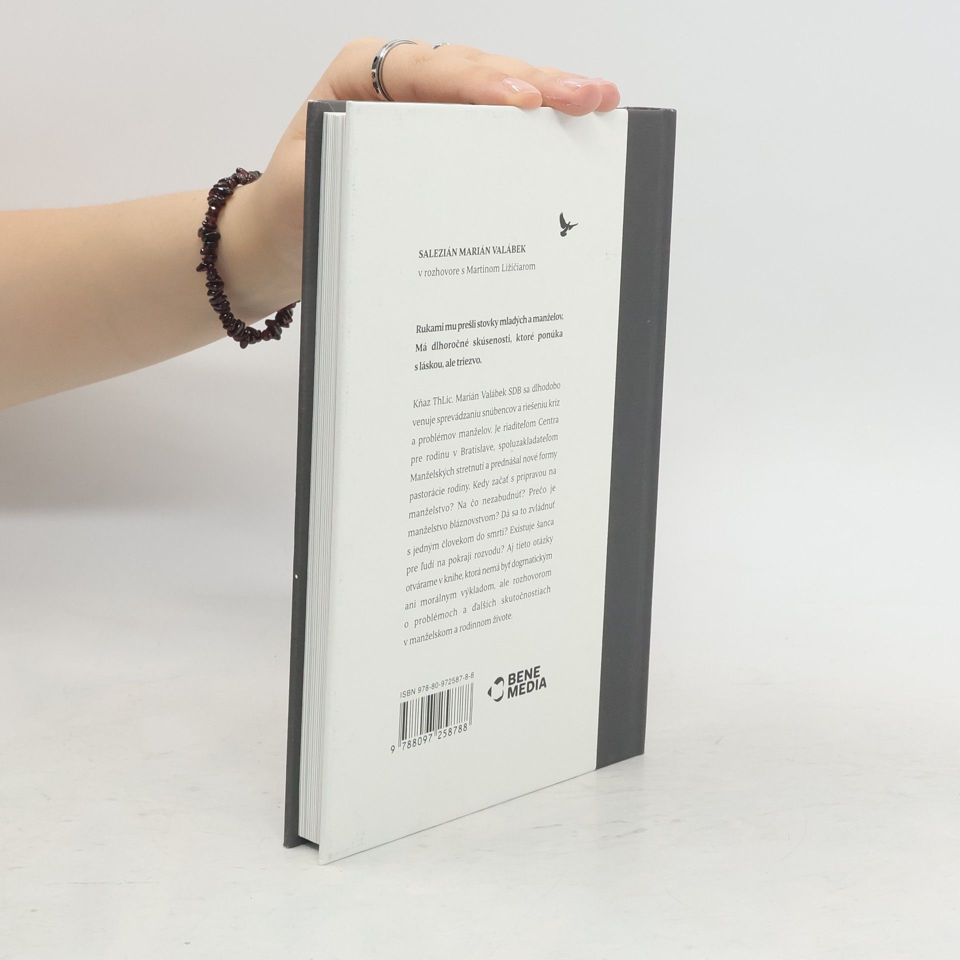 Rukami mu prešli stovky mladých a manželov.Má dlhoročné skúsenosti, ktoré ponúka s láskou, ale triezvo.Kňaz ThLic. Marián Valábek SDB sa dlhodobo venuje sprevádzaniu snúbencov a riešeniu kríz a problémov manželov. Je riaditeľom Centra pre rodinu v Bratislave, spoluzakladateľom Manželských stretnutí a prednášal nové formy pastorácie rodiny. Kedy začať s prípravou na manželstvo? Na čo nezabudnúť? Prečo je manželstvo bláznovstvom? Dá sa zvládnuť s jedným človekom do smrti? Existuje šanca pre ľudí na pokraji rozvodu? Aj tieto otázky otvárame v knihe, ktorá nemá byť dogmatickým ani morálnym výkladom, ale rozhovorom o problémoch a ďalších skutočnostiach v manželskom a rodinnom živote.