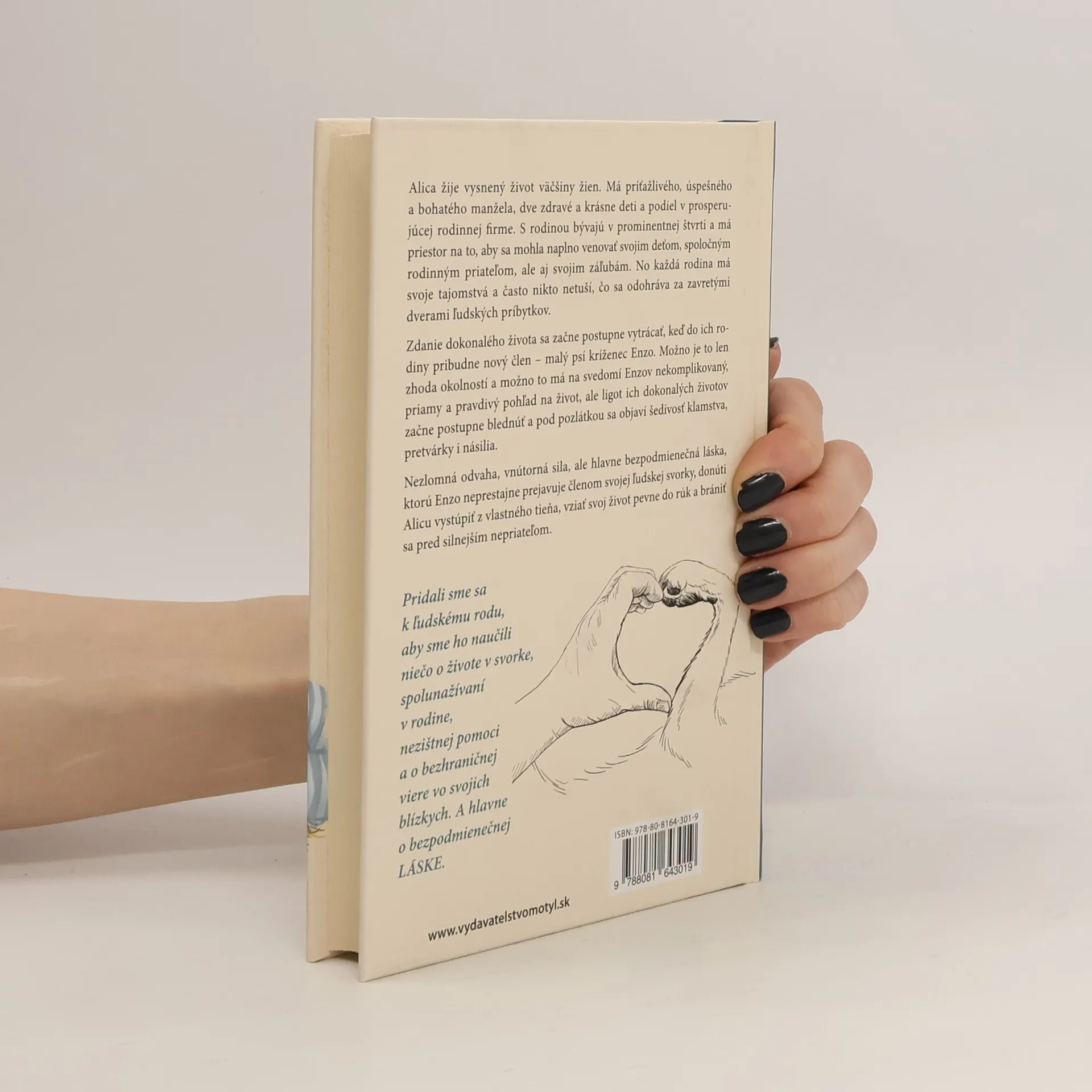 Alica žije vysnený život väčšiny žien. Má príťažlivého, úspešného a bohatého manžela, dve zdravé a krásne deti a podiel v prosperujúcej rodinnej firme. S rodinou bývajú v prominentnej štvrti a ona má priestor na to, aby sa mohla naplno venovať svojim deťom, spoločným rodinným priateľom, ale aj svojim záľubám. No každá rodina má svoje tajomstvá a často nikto netuší, čo sa odohráva za zavretými dverami ľudských príbytkov.Zdanie dokonalého života sa začne postupne vytrácať, keď do ich rodiny pribudne nový člen – malý psí kríženec Enzo. Možno je to len zhoda okolností a možno to má na svedomí Enzov nekomplikovaný, priamy a pravdivý pohľad na život, ale ligot ich dokonalých životov začne postupne blednúť a pod pozlátkou sa objaví šedivosť klamstva, pretvárky i násilia.Nezlomná odvaha, vnútorná sila, ale hlavne bezpodmienečná láska, ktorú Enzo neprestajne prejavuje voči členom svojej ľudskej svorky donúti Alicu vystúpiť z vlastného tieňa, vziať svoj život pevne do rúk a brániť sa voči silnejšiemu nepriateľovi.Pridali sme sa k ľudskému rodu, aby sme ho naučili niečo o živote v svorke, spolunažívaní v rodine, nezištnej pomoci a o bezhraničnej viere vo svojich blízkych. A hlavne o bezpodmienečnej LÁSKE.