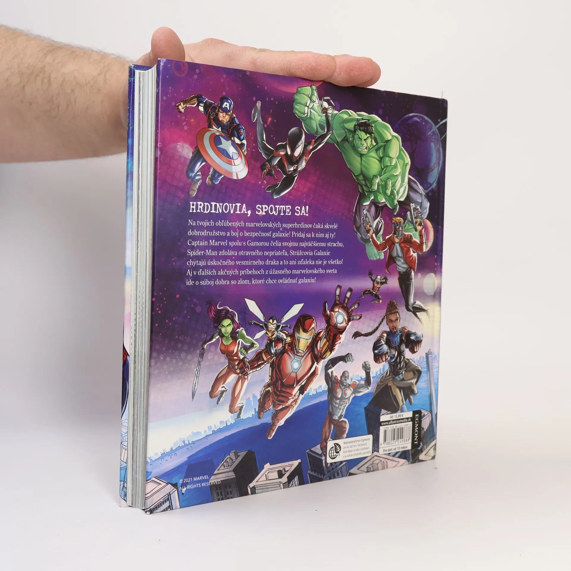 Neprekonateľní hrdinovia od Marvelu zachraňujú svet! Pridajte sa k svojim obľúbeným superhrdinom a vydajte sa na pomoc galaxii! Captain Marvel spolu s Gamorou čelia svojmu najväčšiemu strachu, Spider-Man zdoláva otravného nepriateľa, Strážcovia Galaxie chytajú úskočného vesmírneho draka a to ani zďaleka nie je všetko! Aj v ďalších akčných príbehoch z úžasného marvelovského sveta ide o súboj dobra so zlom, ktoré chce ovládnuť galaxiu!