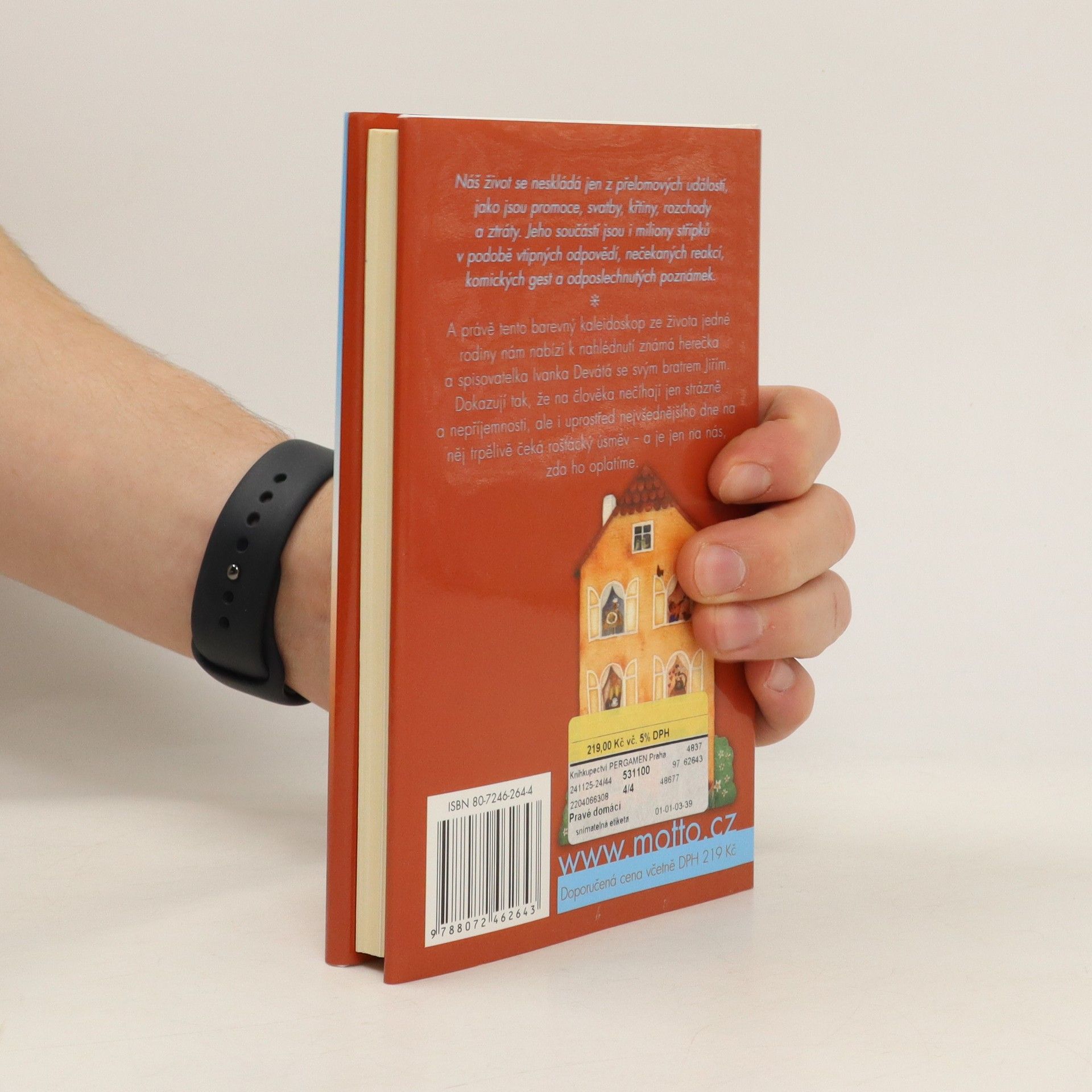 Náš život se neskládá jen z přelomových událostí, jako jsou promoce, svatby, křtiny, rozchody a ztráty. Jeho součástí jsou i miliony střípků v podobě vtipných odpovědí, nečekaných reakcí, komických gest a odposlechnutých poznámek. A právě tento barevný kaleidoskop ze života jedné rodiny nám nabízí k nahlédnutí známá herečka a spisovatelka Ivanka Devátá se svým bratrem Jiřím. Dokazují tak, že na člověka nečíhají jen strázně a nepříjemnosti, ale na něj i uprostřed nejvšednějšího dne trpělivě čeká rošťácký úsměv – a je jen na nás, zda ho oplatíme.