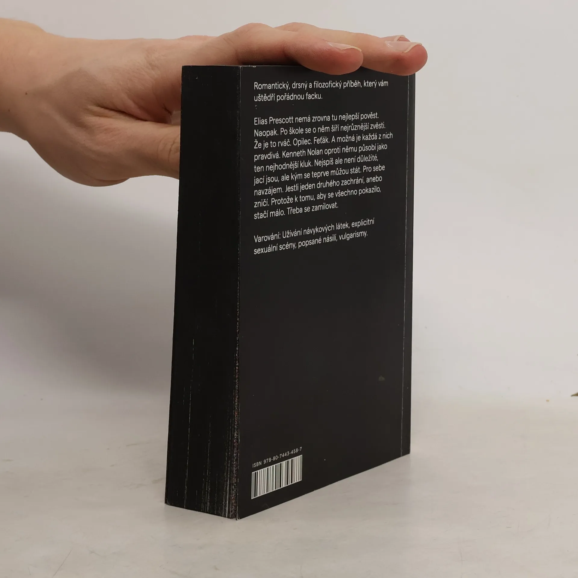 Romantický, drsný a filozofický příběh, který vám uštědří pořádnou facku.Elias Prescott nemá zrovna tu nejlepší pověst. Naopak. Po škole se o něm šíří nejrůznější zvěsti. Že je to rváč. Opilec. Feťák. A možná je každá z nich pravdivá. Kenneth Nolan oproti němu působí jako ten nejhodnější kluk. Nejspíš ale není důležité, jací jsou, ale kým se teprve můžou stát. Pro sebe navzájem. Jestli jeden druhého zachrání, anebo zničí. Protože k tomu, aby se všechno pokazilo, stačí málo. Třeba se zamilovat.Varování: Užívání návykových látek, explicitní sexuální scény, popsané násilí, vulgarismy.