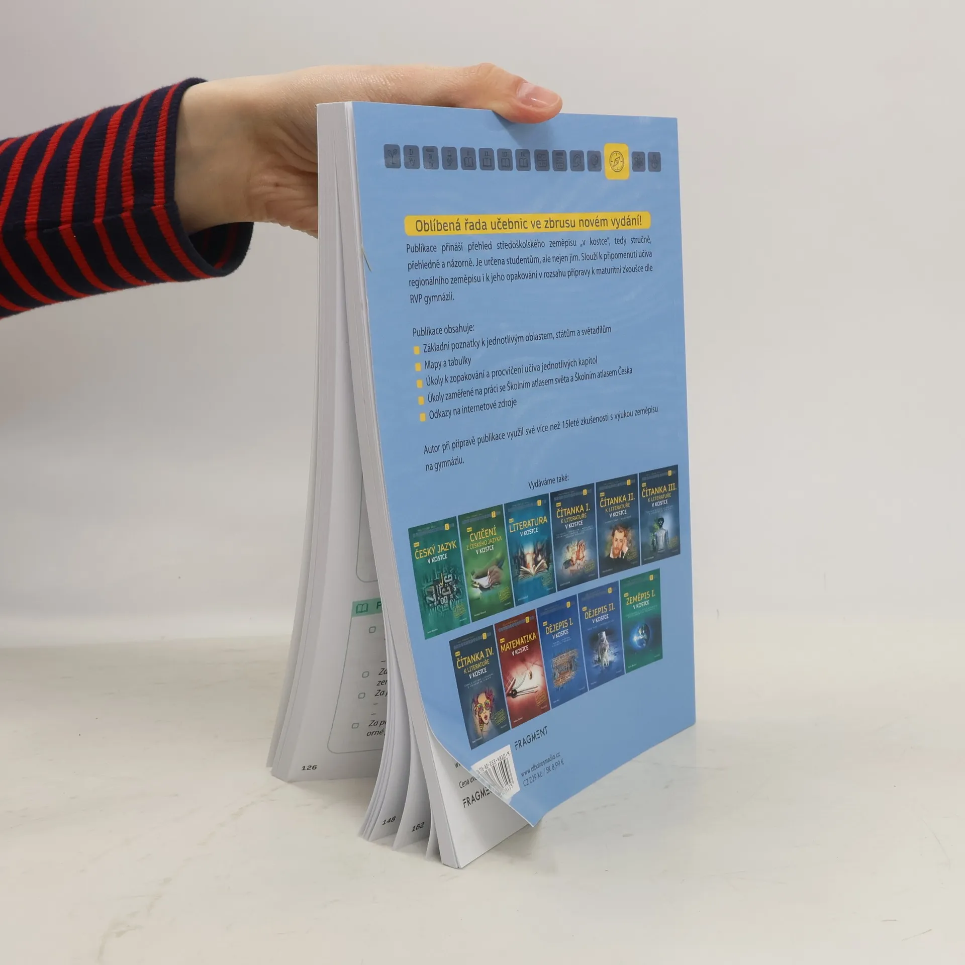 Publikace přináší přehled středoškolského zeměpisu „v kostce“, tedy stručně a přehledně. Slouží k připomenutí učiva obecného zeměpisu i k jeho opakování v rozsahu přípravy k maturitní zkoušce dle RVP gymnázií. Publikace obsahuje základní teorii z oblasti fyzické a socioekonomické geografie. Nechybí mapy, tabulky a schémata, soubory otázek k zopakování vybraného tématu či úlohy pro práci s mapou.