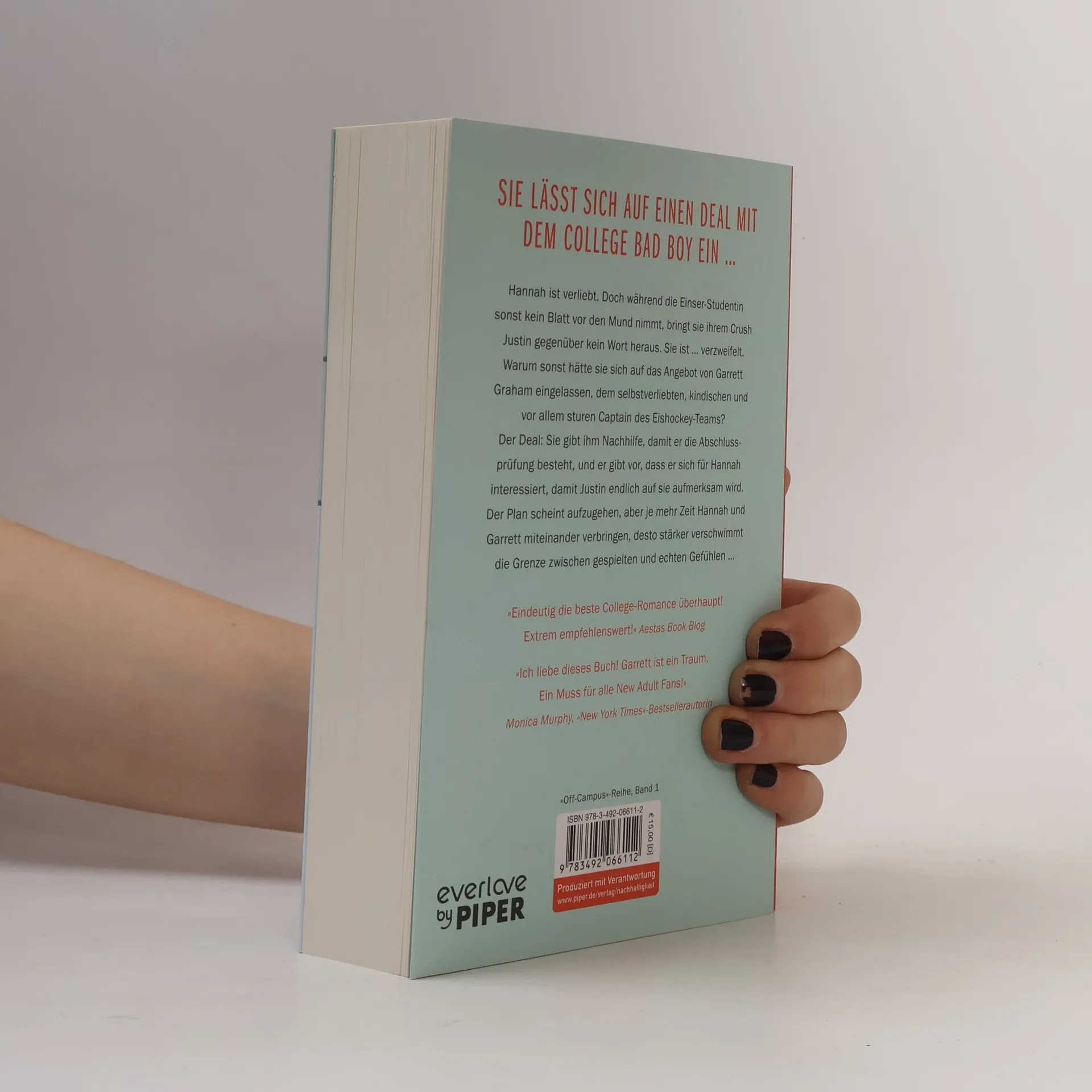 Sie lässt sich auf einen Deal mit dem College Bad Boy ein … Hannah ist verliebt. Doch während die Einser-Studentin sonst kein Blatt vor den Mund nimmt, bringt sie ihrem Crush Justin gegenüber kein Wort heraus. Sie ist ... verzweifelt. Warum sonst hätte sie sich auf das Angebot von Garrett Graham eingelassen, dem selbstverliebten, kindischen und vor allem sturen Captain des Eishockey-Teams? Der Deal: Sie gibt ihm Nachhilfe, damit er die Abschlussprüfung besteht, und er gibt vor, dass er sich für Hannah interessiert, damit Justin endlich auf sie aufmerksam wird. Der Plan scheint aufzugehen, aber je mehr Zeit Hannah und Garrett miteinander verbringen, desto stärker verschwimmt die Grenze zwischen gespielten und echten Gefühlen … »Eindeutig die beste College-Romance aller Zeiten! Extrem empfehlenswert!« Aestas Book Blog »Ich liebe dieses Buch! Garrett ist ein Traum. Ein Muss für alle New Adult Fans!« Monica Murphy, »New York Times«-Bestsellerautorin »Off-Campus«-Reihe, Band 1