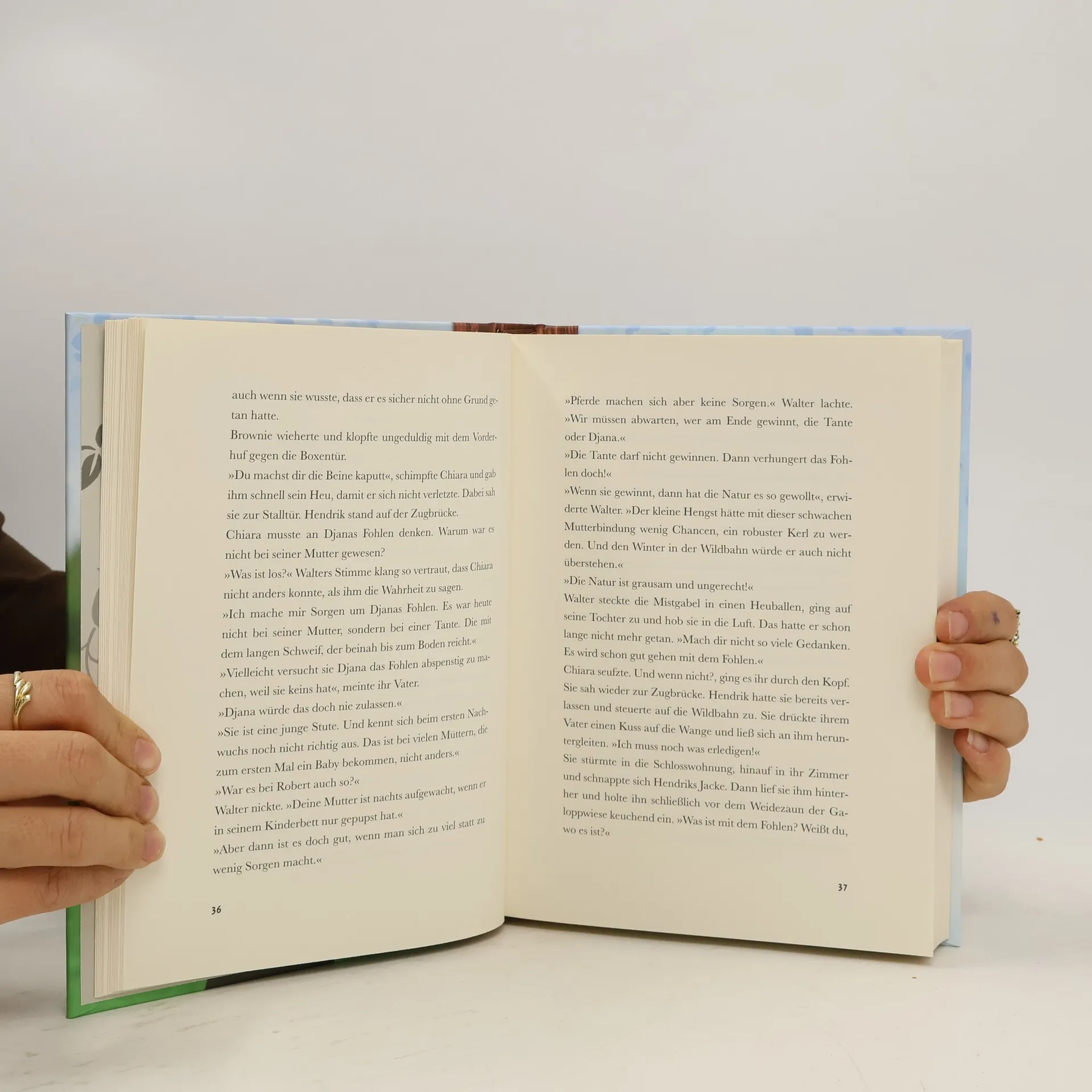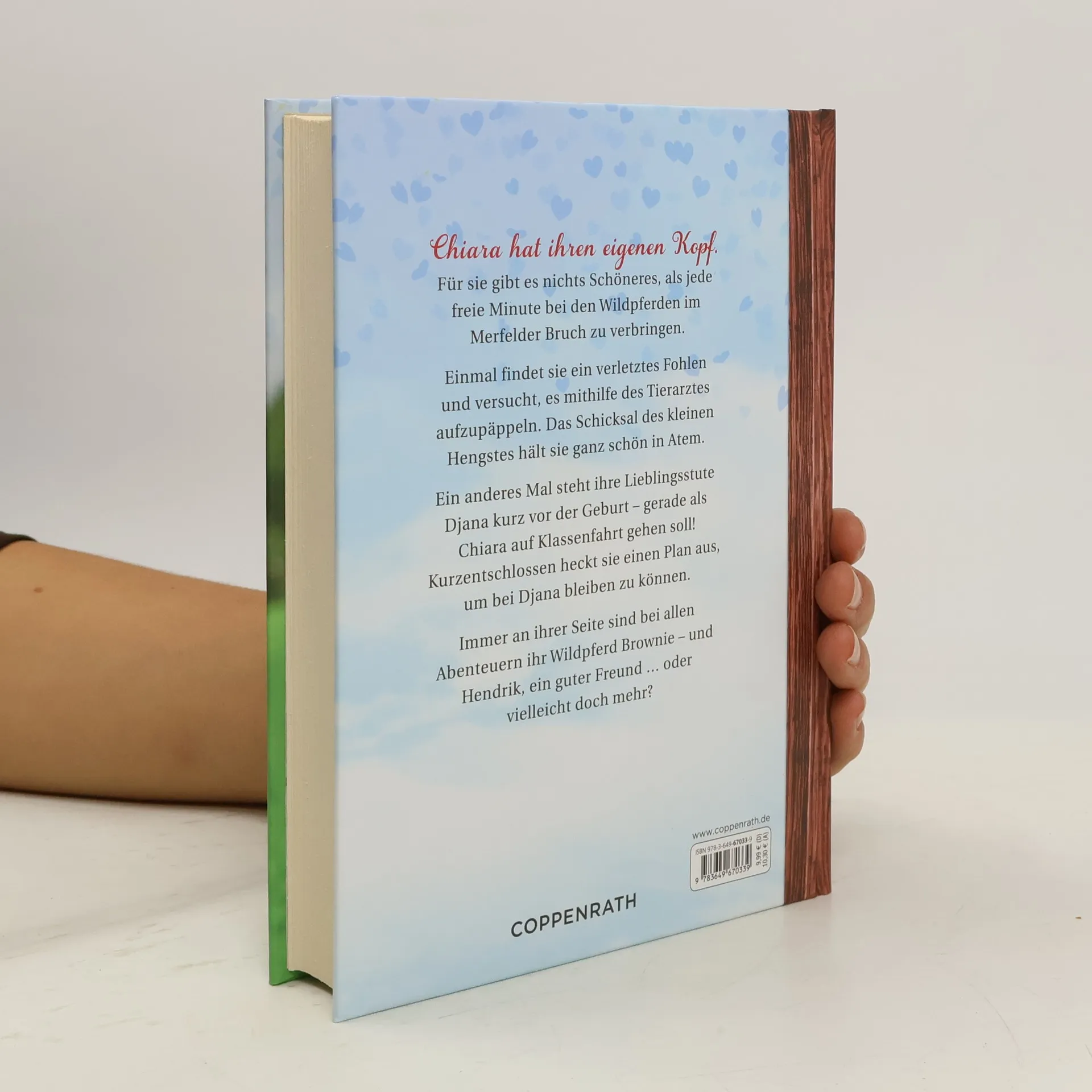 Für Chiara gibt es nichts Schöneres, als jede freie Minute bei den Wildpferden im Merfelder Bruch zu verbringen. Große Aufregung entsteht, als sie eines Tages ein verletztes Fohlen entdeckt. Kurzentschlossen schaltet Chiara den Tierarzt ein - gegen den Willen ihres Vaters, der die Wildpferde betreut. Im zweiten Band steht die Wildpferde-Stute Djana kurz vor der Geburt ihres zweiten Fohlens. Ausgerechnet jetzt soll Chiara auf Klassenfahrt gehen! Zusammen mit ihrem Freund Hendrik heckt sie einen Plan aus, um bei ihrer Lieblingsstute bleiben zu können.