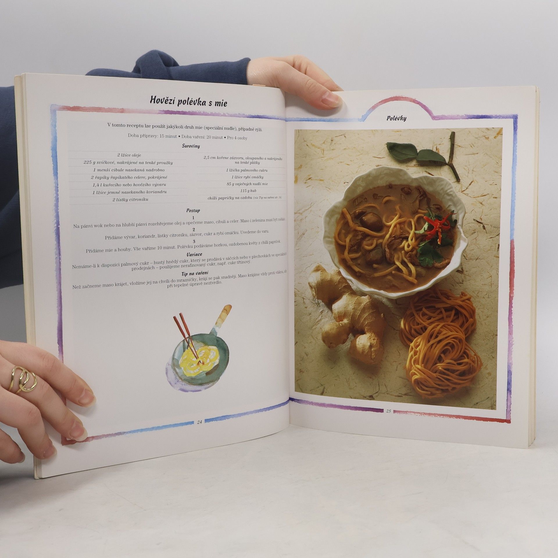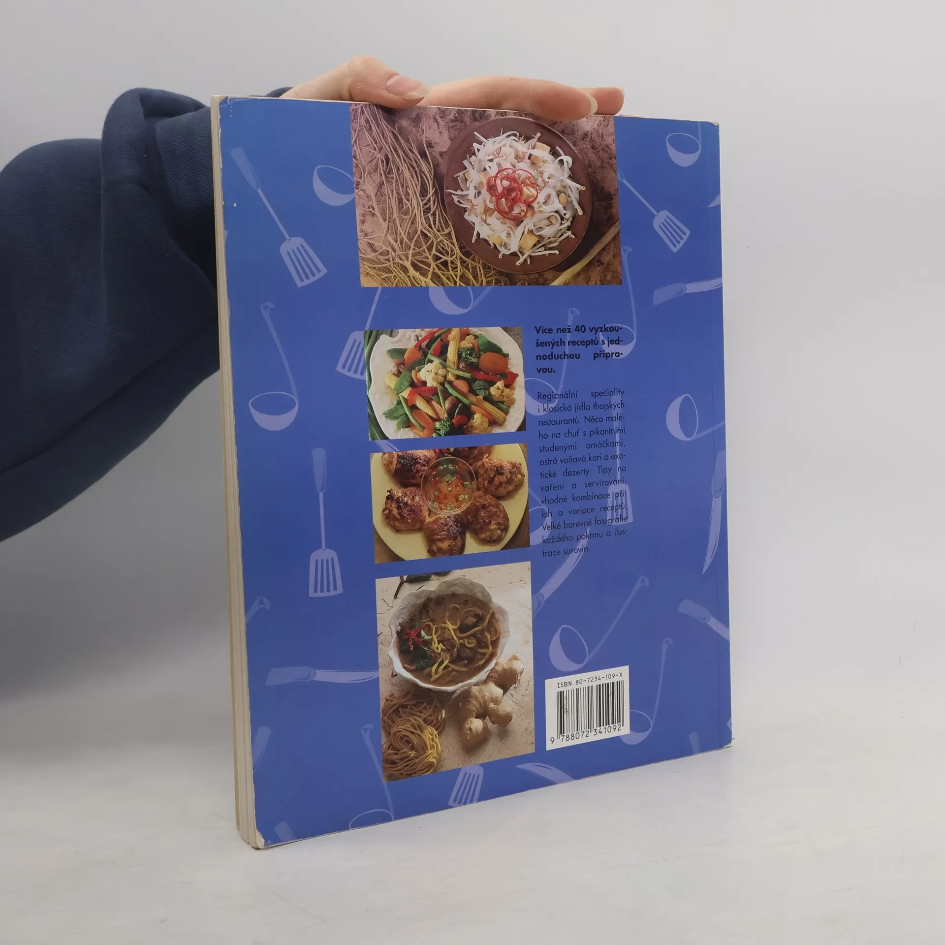 Regionální speciality i klasická jídla thajských restaurantů.Něco malého na chuť s pikantními studenými omáčkami,ostrá voňavá kari a exotické dezerty.Tipy na vaření a servírování vhodné kombinace příloh a variace receptů.Velké barevné fotografie a ilustrace surovin s podrobným návodem.Více než 40 receptů.