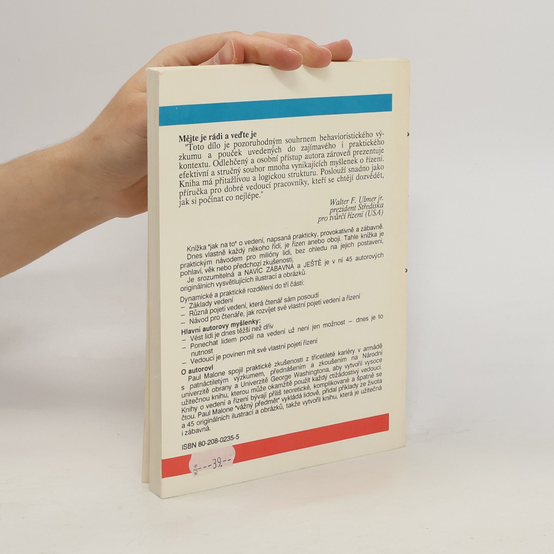 Podtitul: Jak vést lidi; kniha pro každého Populární příručka o řízení a zejména o vedení pracovního kolektivu lidí je vybavena obrázky a řadou praktických příkladů.