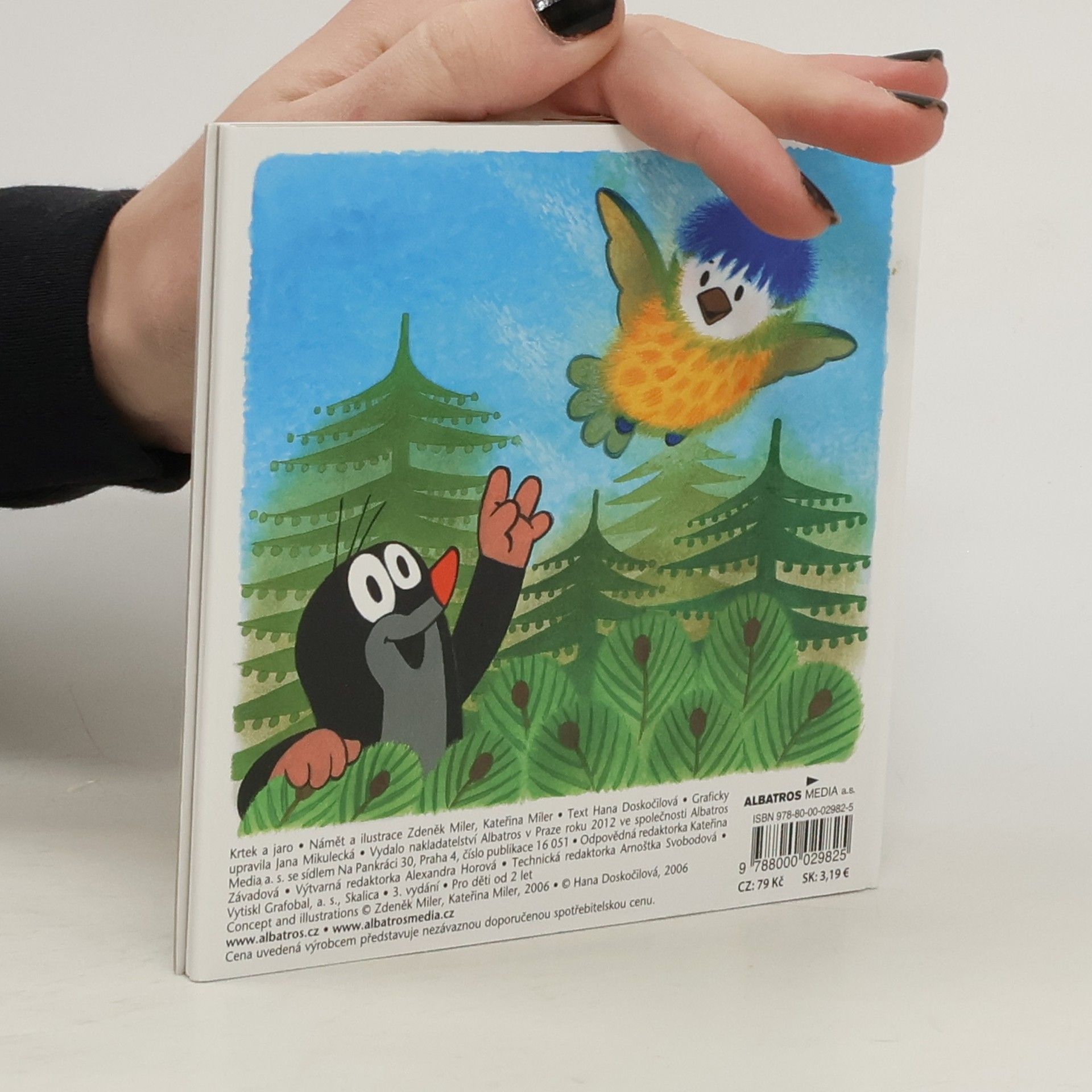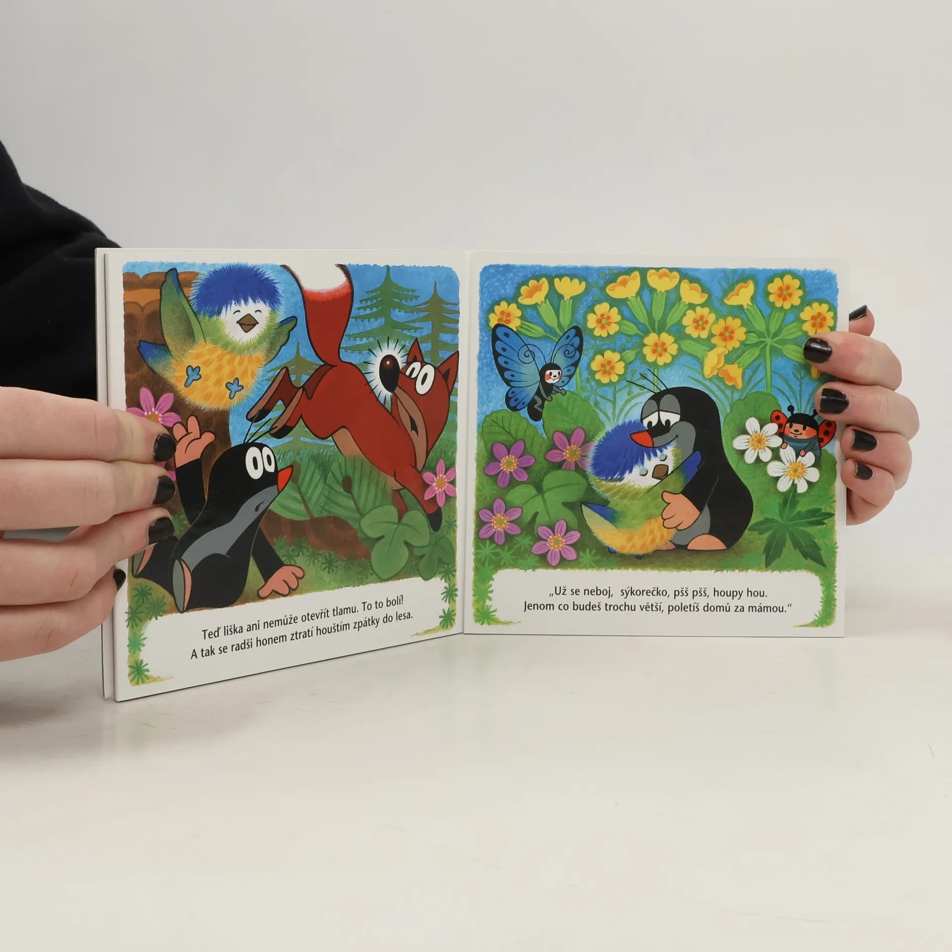 O tom, že jaro už je tady, se Krtek přesvědčil, když po zimě vykoukl ze své podzemní světničky. Krtek je rád, že zimu dobře přečkal, a těší se na jarní sluníčko. Ale jak ostatní zimu přežili? Když Krtek zaslechne úpěnlivé pípání malé sýkorky, která vypadla z dutiny stromu, je to úkol pro něj jako stvořený. Ptáčátko utěší, nakrmí, a než zesílí a naučí se lítat, ochrání ho před liškou. Leporelo pro nejmenší.