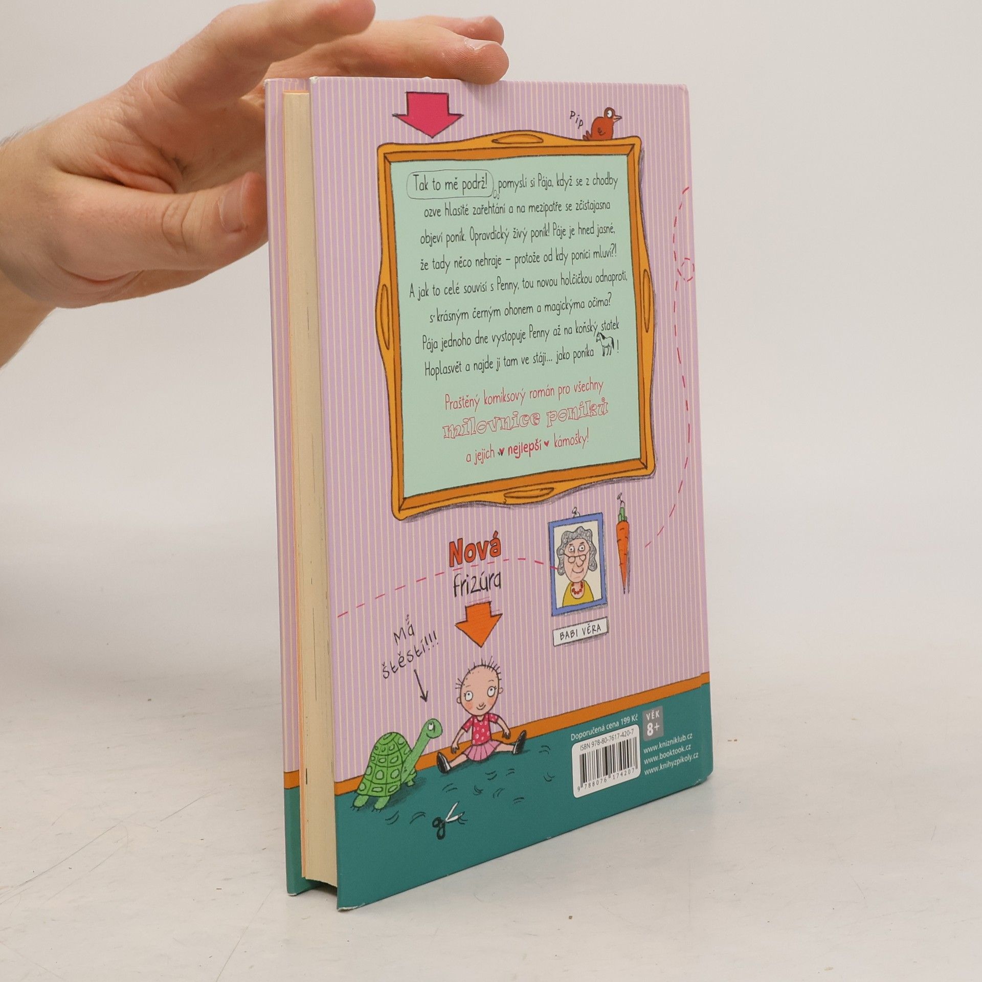 Tak to mě podrž! pomyslí si Pája, když se z chodby ozve hlasité zařehtání a na mezipatře se zčistajasna objeví poník. Opravdický živý poník! Páje je hned jasné, že tady něco nehraje – protože od kdy poníci mluví?! A jak to celé souvisí s Penny, tou novou holčičkou odnaproti, s krásným černým ohonem a magickýma očima? Pája jednoho dne vystopuje Penny až na koňský statek Hoplasvět a najde ji tam ve stáji... jako poníka!