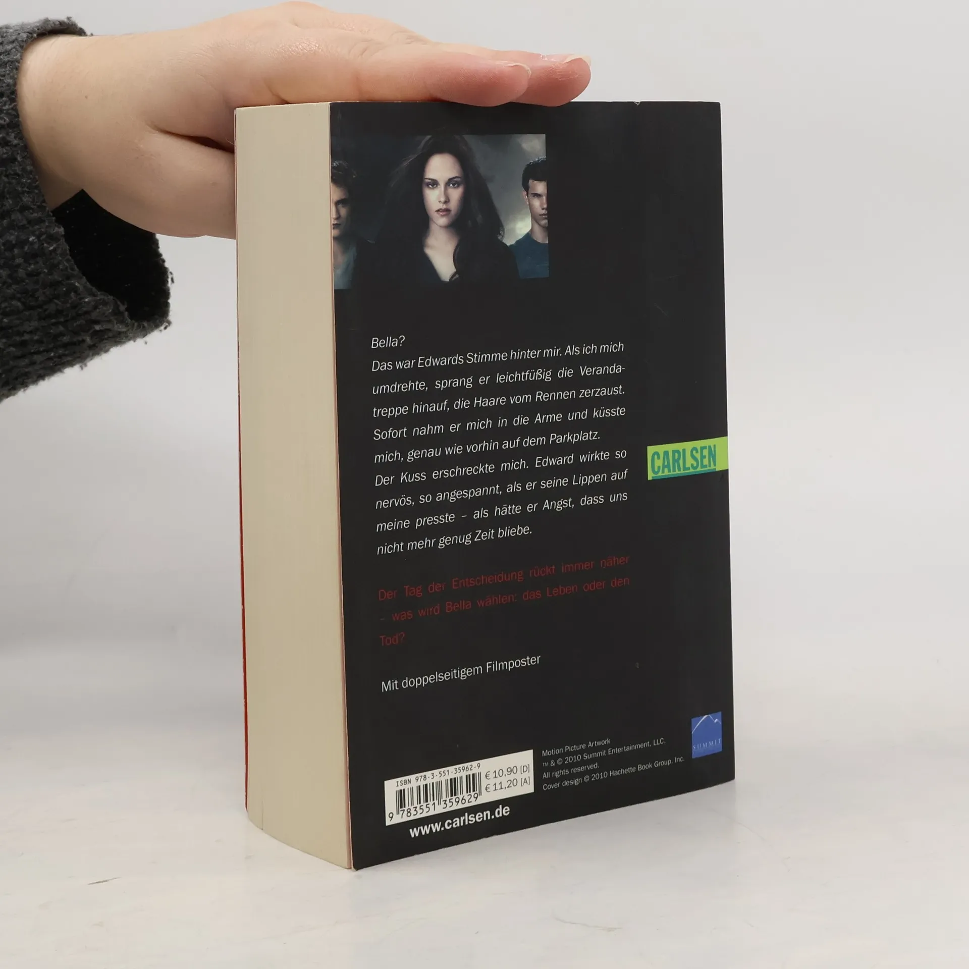 Bellas Leben ist in Gefahr. Seattle wird von einer Reihe rätselhafter Mordfälle erschüttert, ein offensichtlich blutrünstiger Vampir sinnt auf Rache. Und seine Spuren führen zu Bella. Aber damit nicht genug: Nachdem sie wieder mit Edward zusammen ist, muss sie sich zwischen ihrer Liebe zu ihm und ihrer Freundschaft mit Jacob entscheiden - wohl wissend, dass sie damit den uralten Kampf zwischen Vampiren und Werwölfen neu entfachen könnte. „Bella?“ Das war Edwards Stimme hinter mir. Als ich mich umdrehte, sprang er leichtfüßig die Verandatreppe hinauf, die Haare vom Rennen zerzaust. Sofort nahm er mich in die Arme und küsste mich, genau wie vorhin auf dem Parkplatz. Der Kuss erschreckte mich. Edward wirkte so nervös, so angespannt, als er seine Lippen auf meine presste - als hätte er Angst, dass uns nicht mehr genug Zeit bliebe. Der Tag der Entscheidung rückt immer näher - was wird Bella wählen: Leben oder Tod?