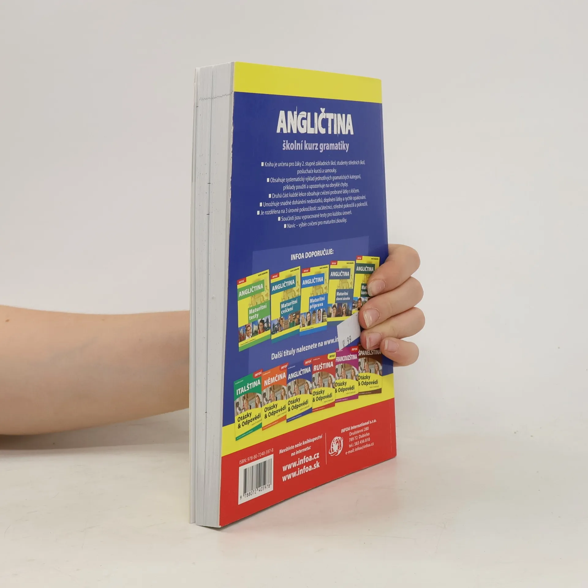 Kniha je určena pro studenty středních škol, posluchače kurzů a samouky. Obsahuje systematický výklad jednotlivých gramatických kategorií a příklady použití. Druhá část každé lekce obsahuje cvičení probrané látky s klíčem. Kniha je rozdělena na tři úrovně pokročilosti - začátečníci, středně pokročilí a pokročilí. Součástí knihy jsou vypracované testy pro každou úroveň. Navíc - výběr cvičení pro maturitní zkoušky.