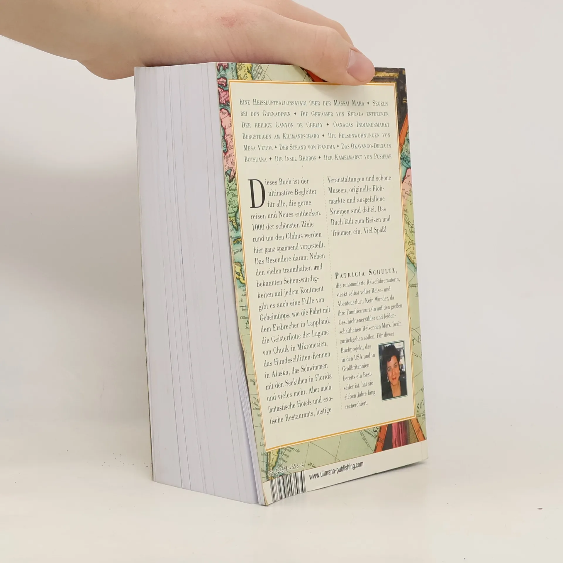 Dieses Buch ist der ultimative Begleiter für alle, die gerne reisen und Neues entdecken. 1000 der schönsten Ziele rund um den Globus werden hier ganz spannend vorgestellt. Das Besondere daran: Neben den vielen traumhaften und bekannten Sehenswürdigkeiten auf jedem Kontinent gibt es auch eine Fülle von Geheimtipps, wie die Fahrt mit dem Eisbrecher in Lappland, die Geisterflotte der Lagune von Chuuk in Mikronesien, das Schwimmen mit Seekühen in Florida und vieles mehr ... Aber auch besondere Hotels und Restaurants, schöne Museen und Veranstaltungen sind dabei!