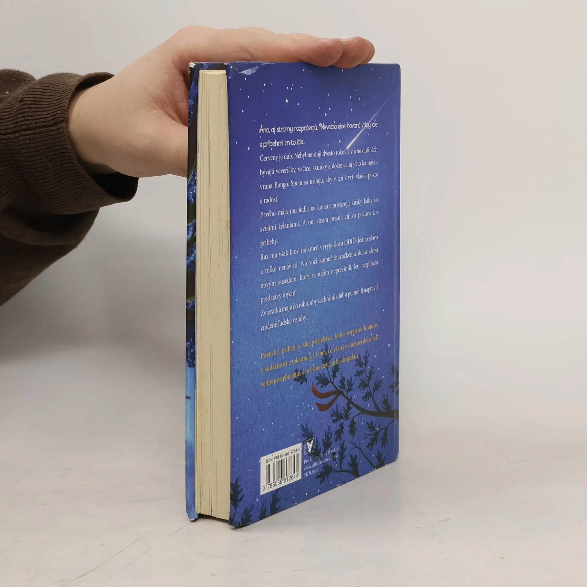 Poetický príbeh o sile priateľstva, ktoré nepozná hranice, o súdržnosti a tolerancii. Červený je dub. Nehybne stojí dvesto rokov a v jeho dutinách bývajú veveričky, vačice, skunky a dokonca aj jeho kamoška vrana Bongo. Spolu sa usilujú, aby v ich štvrti vládol pokoj a radosť. Prvého mája mu ľudia na konáre priväzujú kúsky látky so svojimi želaniami. A on, strom prianí, citlivo počúva ich príbehy. Raz mu však ktosi na kmeň vyryje slovo ODÍĎ. Jedno slovo a toľko nenávisti. No voči komu? Staručkému dubu alebo novým susedom, ktorí sa ničím neprevinili, len nespĺňajú predstavy iných?