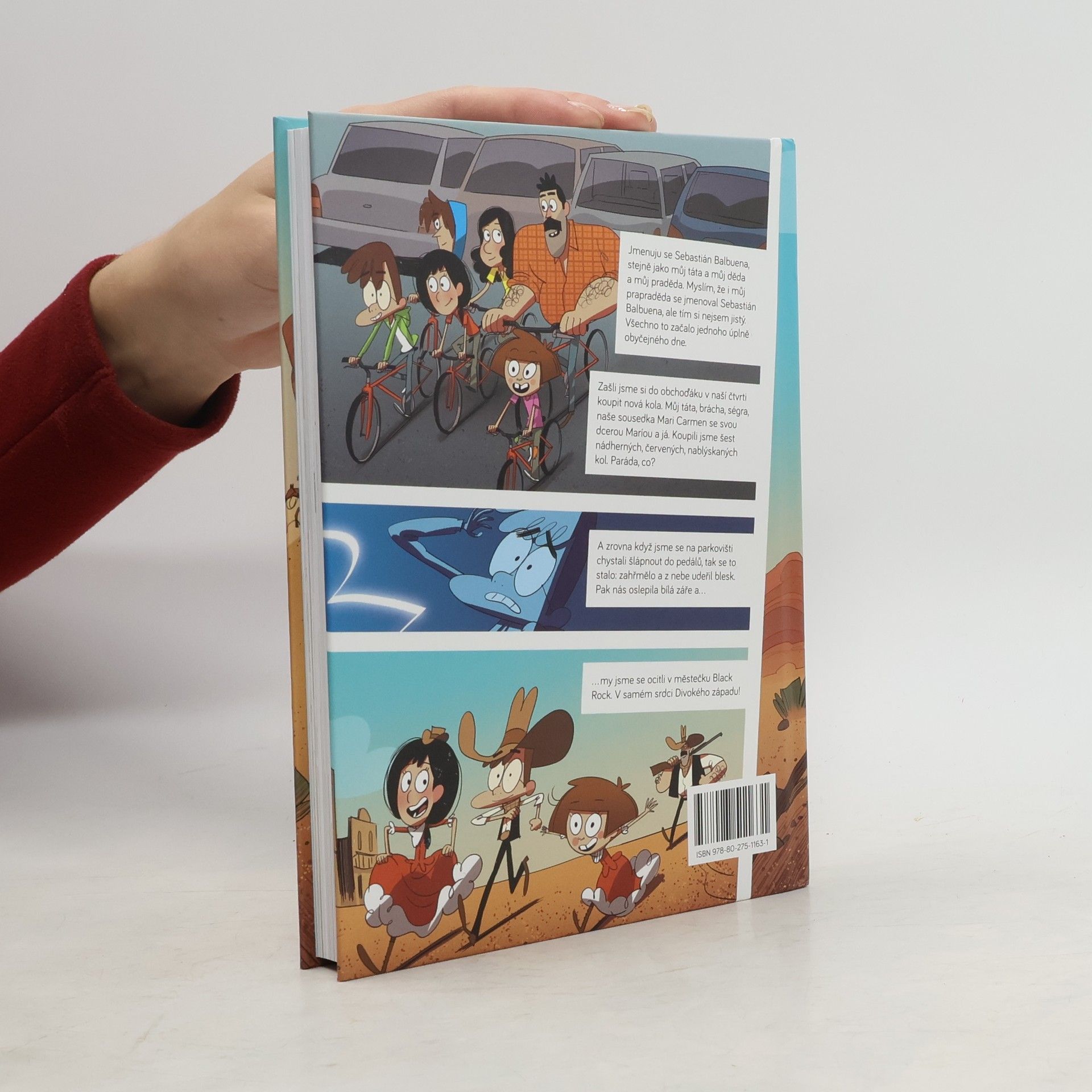 Nová série napínavých akčních příběhů od autorů bestsellerových Fotbaláků Všechno to začalo, jak už to tak bývá, jednoho úplně obyčejného dne. Zašli jsme si do obchoďáku v naší čtvrti koupit nová kola. Můj táta, brácha, ségra, naše sousedka Mari Carmen se svou dcerou Máriou a já. Koupili jsme šest nádherných, červených, nablýskaných kol. Paráda, co? A zrovna když jsme se na parkovišti chystali šlápnout do pedálů, tak se to stalo: zahřmělo a z nebe udeřil blesk. Pak nás oslepila bílá záře a… my jsme se ocitli v městečku Black Rock. V samém srdci Divokého západu. Zdá se vám to ulítlé? Mně taky, ale zažil jsem to. A tohle je jenom začátek! Dobrodružství rodiny Balbuenových na Divokém západě je první díl nové série Roberta Santiaga, autora oblíbených Fotbaláků. Seznámíte se v něm s bláznivou rodinkou, která se shodou nevyzpytatelných okolností zacyklí v čase a prostoru. A tak putuje jednou historickou epochou za druhou.