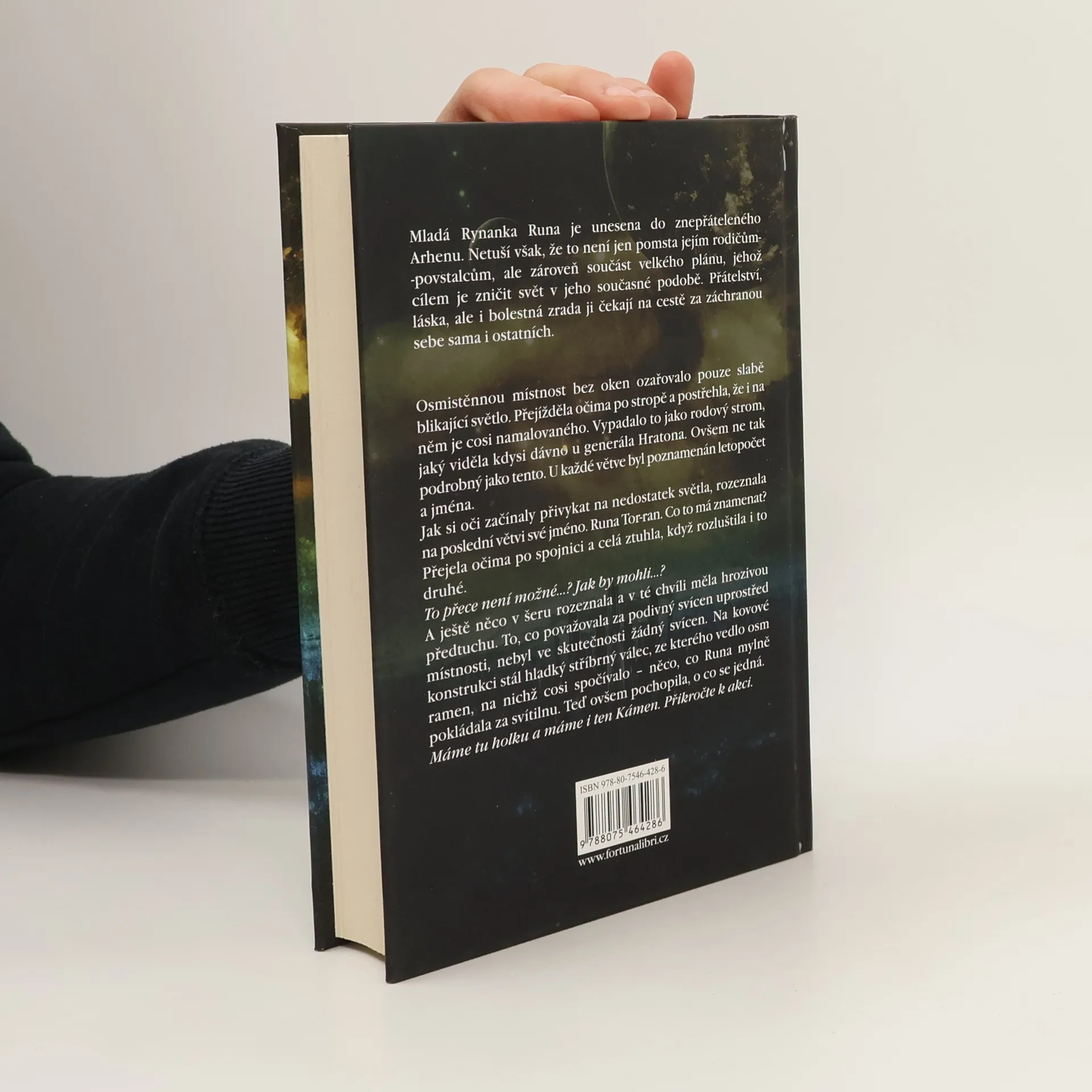 Mladá Rynanka Runa je unesena do znepřáteleného Arhenu. Netuší však, že to není jen pomsta jejím rodičům-povstalcům, ale zároveň součást velkého plánu, jehož cílem je zničit svět v jeho současné podobě. Přátelství, láska, ale i bolestná zrada ji čekají na cestě za záchranou sebe sama i ostatních.***Osmistěnnou místnost bez oken ozařovalo pouze slabě blikající světlo. Přejížděla očima po stropě a postřehla, že i na něm je cosi namalovaného. Vypadalo to jako rodový strom, jaký viděla kdysi dávno u generála Hratona. Tento však byl podrobnější. U každé větve byl letopočet a poznamenaná jména.Jak si oči začínaly přivykat na nedostatek světla, rozeznala na poslední větvi své jméno. Runa Tor-ran. Co to má znamenat? Přejela očima po spojnici a celá ztuhla, když rozluštila i to druhé. To přece není možné…? Jak by mohli…?A ještě něco v šeru rozeznala a v té chvíli měla hrozivou předtuchu. To, co považovala za podivný svícen uprostřed místnosti, ve skutečnosti nebyl žádný svícen. Na kovové konstrukci stál hladký stříbrný válec, ze kterého vedlo osm ramen, na nichž cosi spočívalo – něco, co Runa mylně pokládala za svítilnu. Teď ovšem pochopila, o co se jedná.Máme tu holku a máme i ten Kámen. Přikročte k akci.