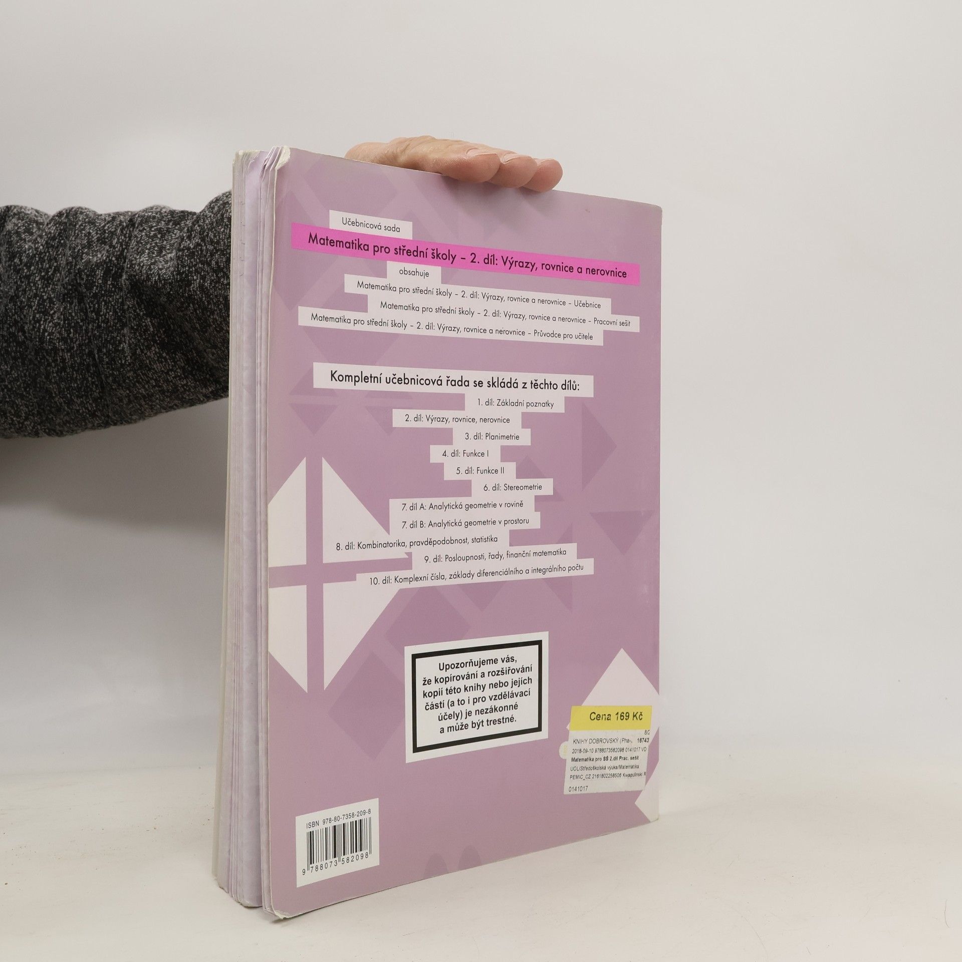There are currently of book Matematika pro střední školy. 2. díl, Výrazy, rovnice a nerovnice. Pracovní sešit (2013) in stock.
