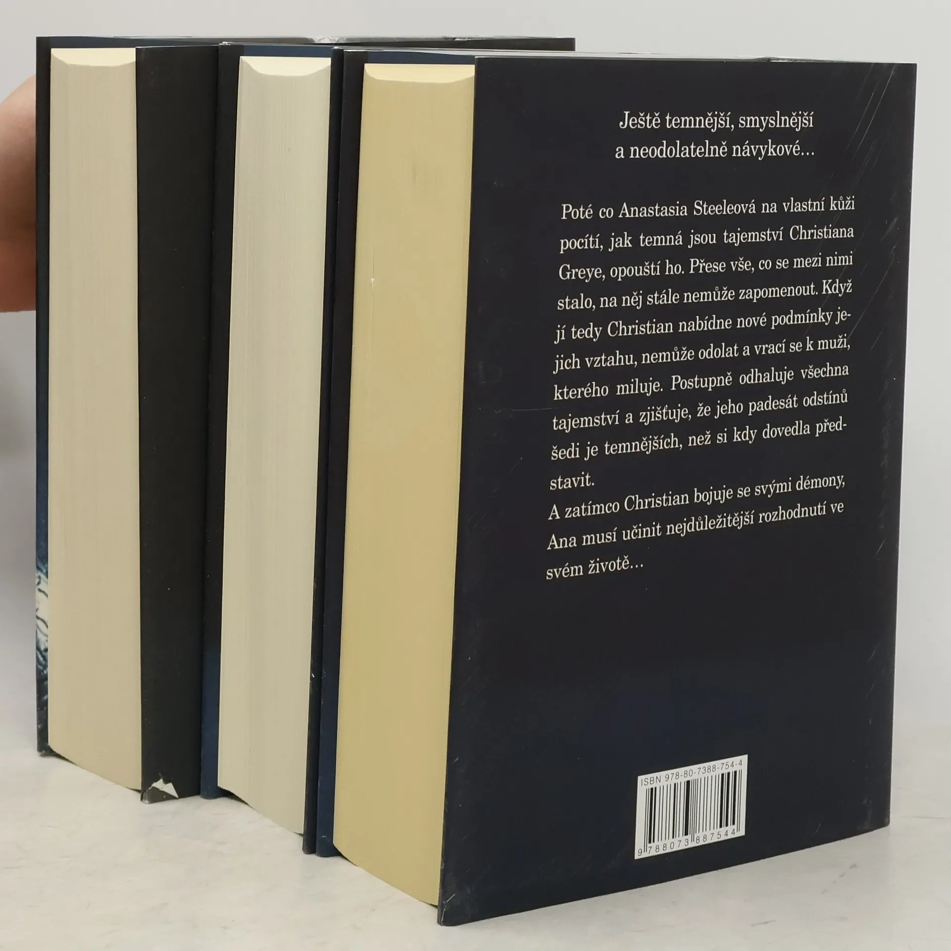 Když se studentka literatury Anastasia vydává na pohovor s mladým podnikatelem Christianem Greyem, netuší, že potká muže, který jí změní život i hodnoty. Christian je pohledný, chytrý a… tajemný. Naivní a nevinná Anastasia si začíná uvědomovat, že přes jeho skrývaná tajemství jím začíná být úplně posedlá. Ale ani Christian není vůči její kráse, šarmu a charakteru imunní a připouští, že on po ní také touží – ovšem za vlastních, specifických podmínek… Jenomže tyto podmínky se pro Anu v jednu chvíli stanou nesnesitelné, a když na vlastní kůži pocítí, jak temná jsou Christianova tajemství, opouští ho. Přese vše, co se mezi nimi stalo, na něj však nemůže zapomenout. Když jí tedy Christian předloží novou dohodu, nemůže odolat a vrací se k muži, kterého miluje.