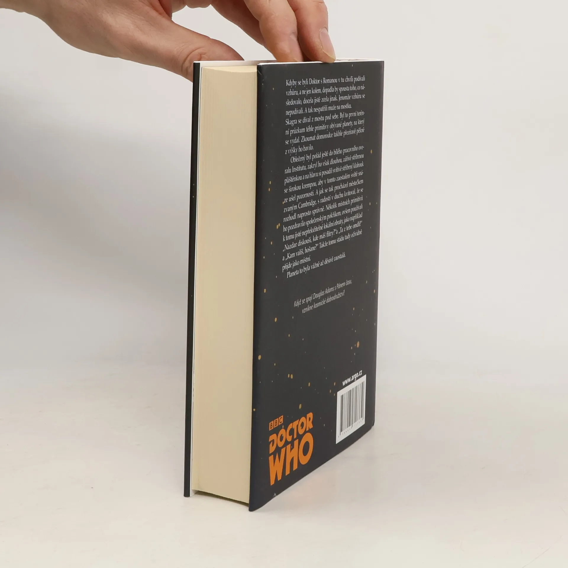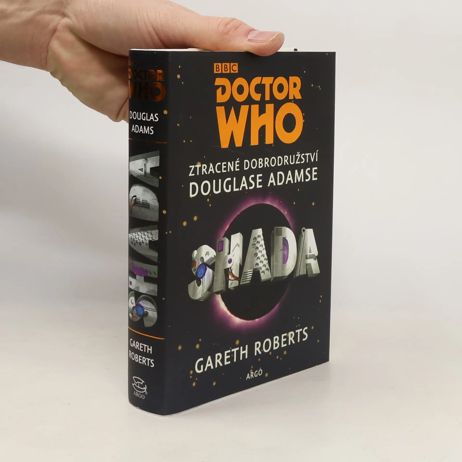 Dobrodružství čtvrtého Doktora, které se nikdy nedostalo na televizní obrazovku, bylo napsáno Douglasem Adamsem v roce 1979 a nyní bylo dotvořeno Garethem Robertsem. Doktor a jeho společník Romana obdrží naléhavou žádost o pomoc od profesora Chronotise z Cambridge. Po přistání v jeho knihami přeplněné pracovně zjistí, že profesor o žádné zprávě nic neví, a místo očekávaného dobrodružství je čeká jen projížďka po řece a šálky čaje. Brzy se však ozve mrazivé úpění, které naznačuje, že situace je daleko vážnější. Profesor se potýká s tajemnou ztracenou knihou, zatímco Doktora pronásleduje létající koule schopná vysávat myšlenky, patřící šílenému zločinci Skagrovi. Jeho plán na ovládnutí vesmíru může zhatit jen Doktorova chaotická improvizace, při které mu pomáhají humanoidi Chris a Clare a mobilní počítač K-9. Otázky o Skagrovi a skutečné identitě profesora Chronotise se množí, stejně jako otázka, co nebo kdo je Shada. Douglas Adams, známý jako autor Stopařova průvodce Galaxií, napsal také scénáře k třem dílům kultovního seriálu Doctor Who. Tato románová verze Shady, nikdy nedokončená a nevysílaná, přináší nové dobrodružství pro fanoušky. Gareth Roberts, britský scenárista, se proslavil jako autor příběhů na motivy tohoto seriálu.