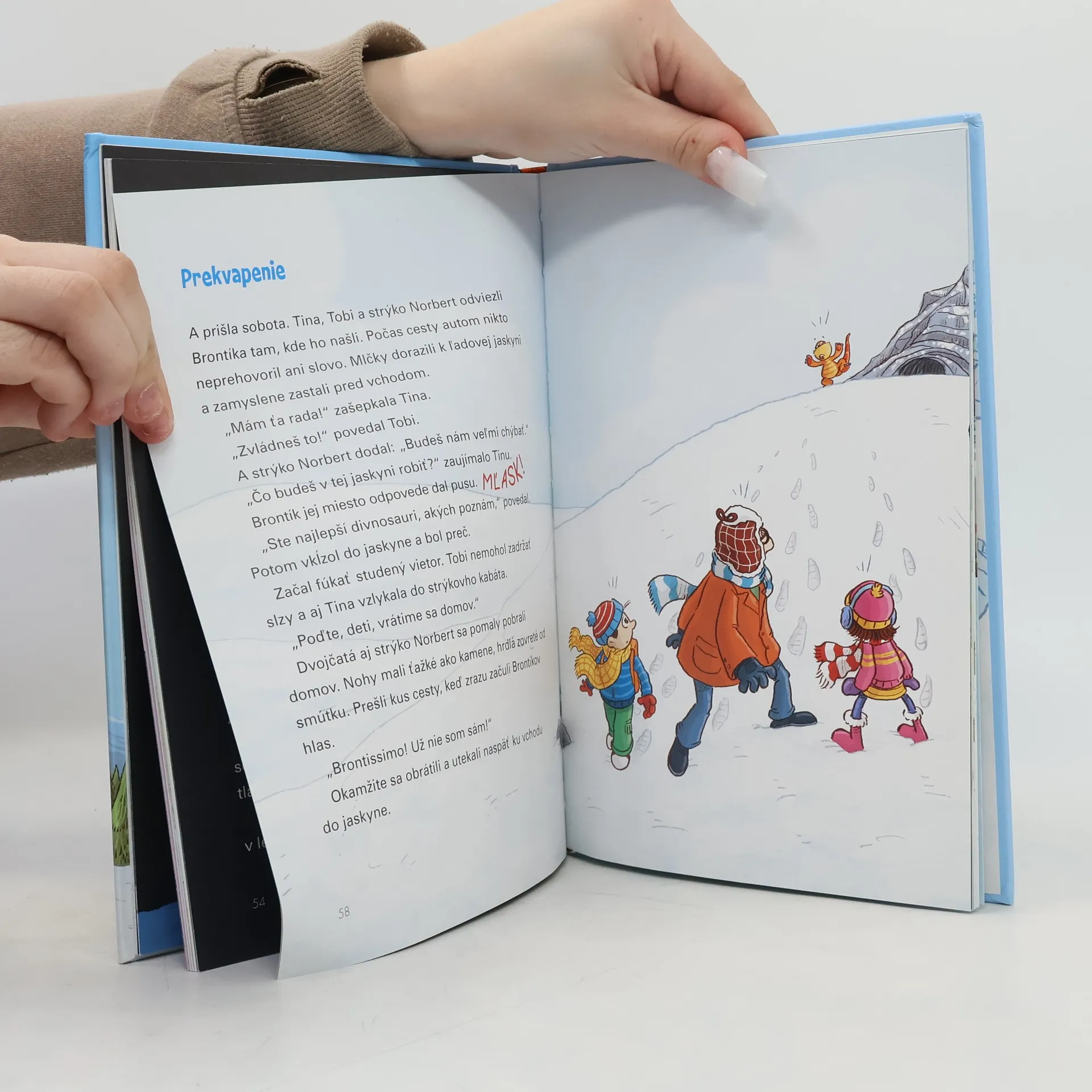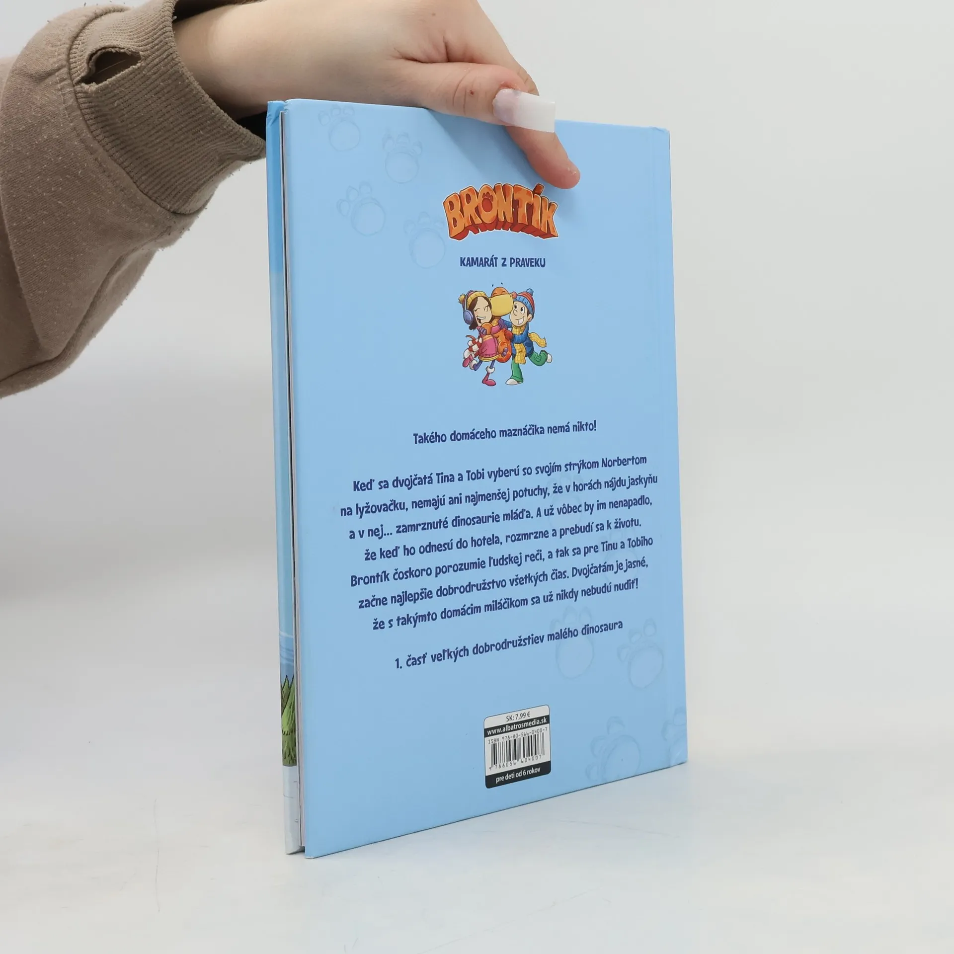 Takého domáceho maznáčika nemá nikto! Keď sa dvojčatá Tina a Tobi vyberú so svojím strýkom Norbertom na lyžovačku, nemajú ani najmenšej potuchy, že v horách nájdu jaskyňu a v nej... zamrznuté dinosaurie mláďa. A už vôbec by im nenapadlo, že keď ho odnesú do hotela, rozmrzne a prebudí sa k životu. Brontík čoskoro porozumie ľudskej reči, a tak sa pre Tinu a Tobiho začne najlepšie dobrodružstvo všetkých čias. Dvojčatám je jasné, že s takýmto domácim miláčikom sa už nikdy nebudú nudiť!