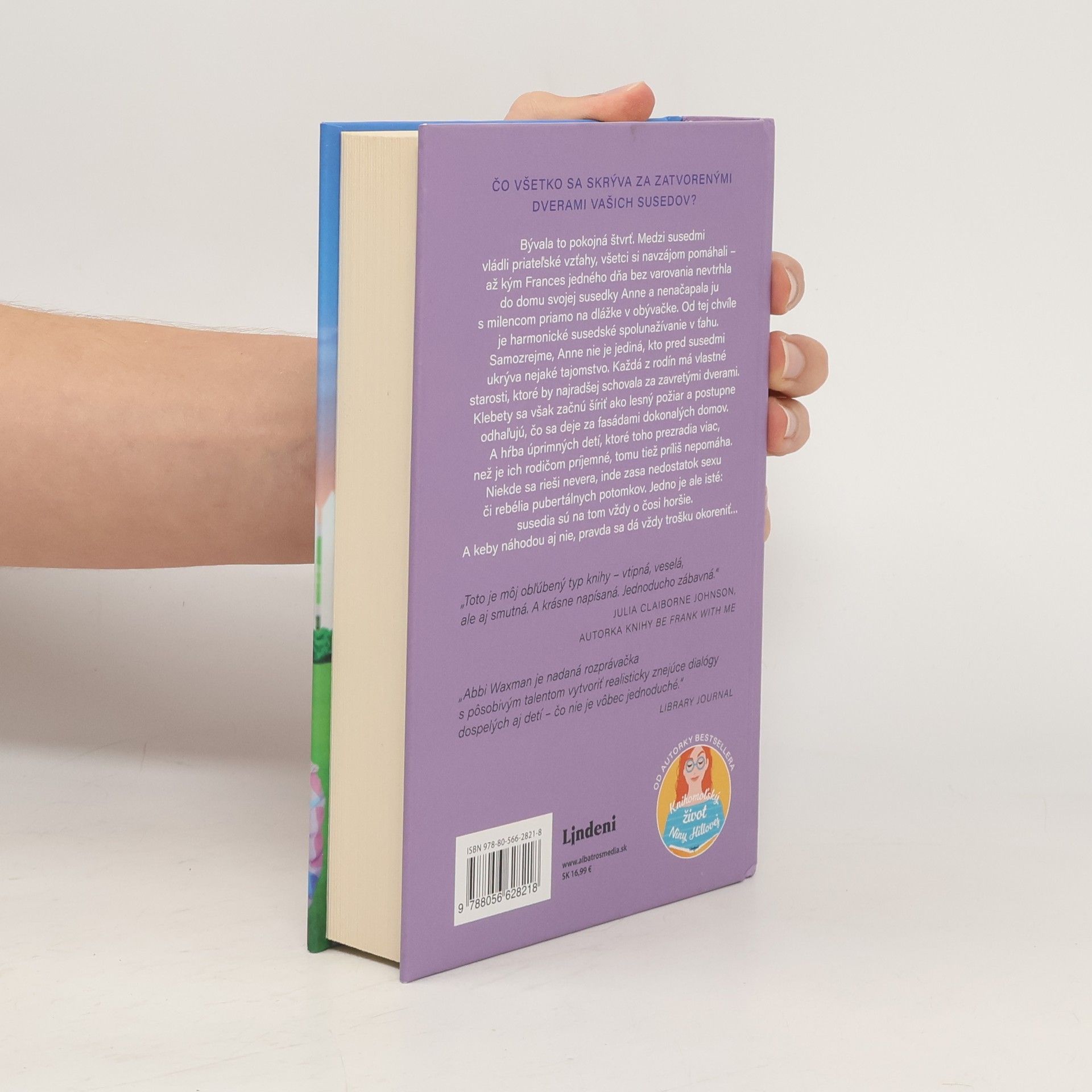 Bývala to pokojná štvrť. Medzi susedmi vládli priateľské vzťahy, všetci si navzájom pomáhali – až kým Frances jedného dňa bez varovania nevtrhla do domu svojej susedky Anne a nenačapala ju s milencom priamo na dlážke v obývačke. Od tej chvíle je harmonické susedské spolunažívanie v ťahu. Samozrejme, Anne nie je jediná, kto pred susedmi ukrýva nejaké tajomstvo. Každá z rodín má vlastné starosti, ktoré by najradšej schovala za zavretými dverami. Klebety sa však začnú šíriť ako lesný požiar a postupne odhaľujú, čo sa deje za fasádami dokonalých domov. A hŕba úprimných detí, ktoré toho prezradia viac, než je ich rodičom príjemné, tomu tiež príliš nepomáha. Niekde sa rieši nevera, inde zasa nedostatok sexu či rebélia pubertálnych potomkov. Jedno je ale isté: susedia sú na tom vždy o čosi horšie. A keby náhodou aj nie, pravda sa dá vždy trošku okoreniť…