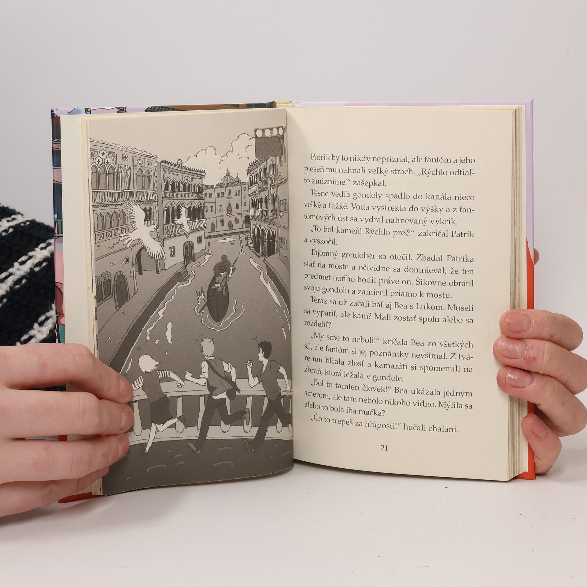 Tigrí tím sa tentoraz ocitol v talianskych Benátkach, meste pretkanom nespočetnými kanálmi. Na prechádzke spleťou tajomných uličiek stretnú záhadného gondoliera, ktorého správanie ich na smrť vydesí. Zdá sa však, že strach nenaháňa iba im. Kamaráti Bea, Luk a Patrik sa nechtiac zapletú do mimoriadne nebezpečného dobrodružstva. Podarí sa im aj tentoraz vyviaznuť so zdravou kožou a prispieť k rozuzleniu napínavého príbehu?