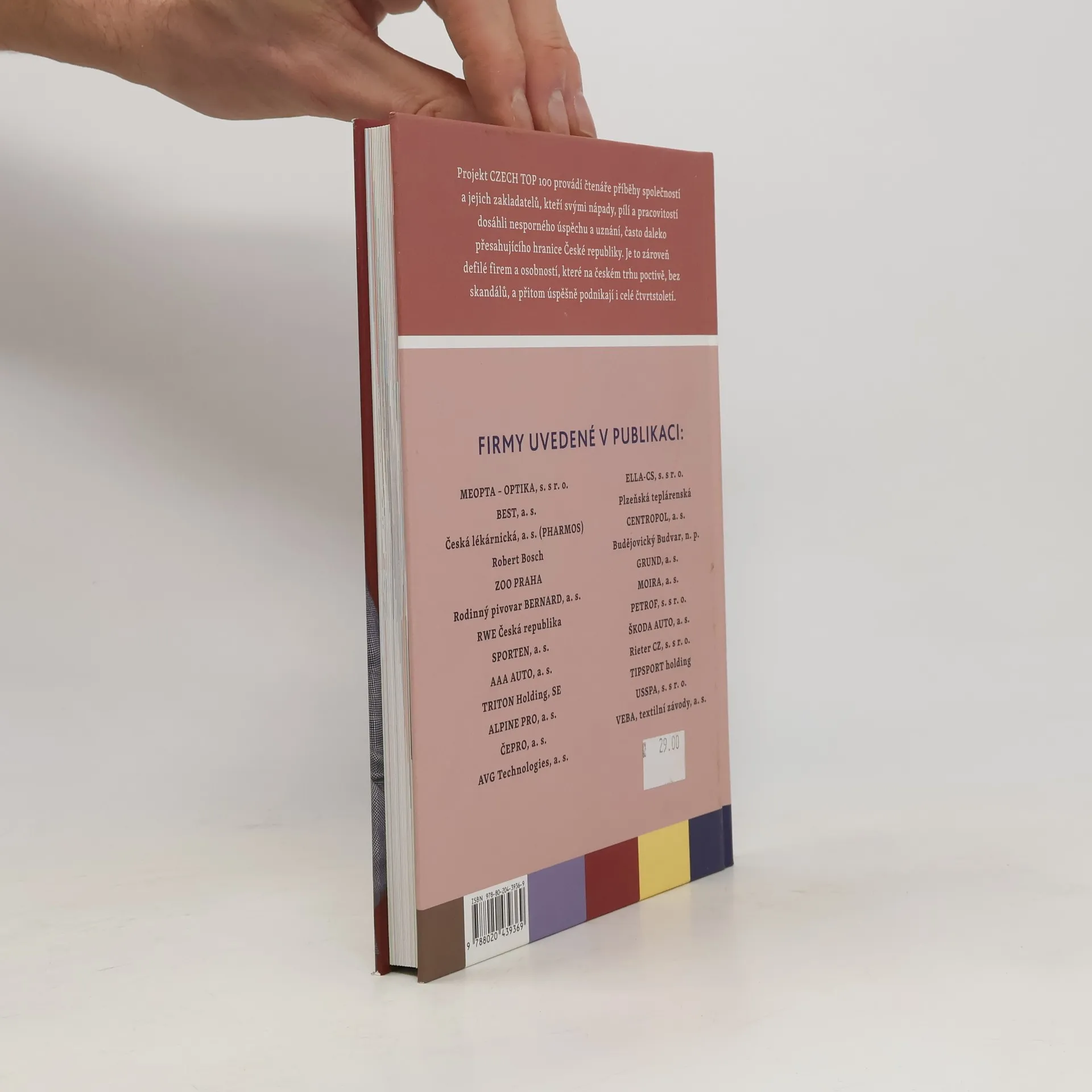 Projekt CZECH TOP 100 provádí čtenáře příběhy společností a jejich zakladatelů, kteří svými nápady, pílí a pracovitostí dosáhli nesporného úspěchu a uznání, často daleko přesahujícího hranice České republiky. Je to zároveň defilé firem a osobností, které na českém trhu poctivě, bez skandálů, a přitom úspěšně podnikají i celé čtvrtstoletí. FIRMY UVEDENÉ V PUBLIKACI: MEOPTA – OPTIKA, s. s r. o. BEST, a. s. Česká lékárnická, a. s. (PHARMOS) Robert Bosch ZOO PRAHA Rodinný pivovar BERNARD, a. s. RWE Česká republika SPORTEN, a. s. AAA AUTO, a. s. TRITON Holding, SE ALPINE PRO, a. s. ČEPRO, a. s. AVG Technologies, a. s. ELLA-CS, s. s r. o. Plzeňská teplárenská CENTROPOL, a. s. Budějovický Budvar, n. p. GRUND, a. s. MOIRA, a. s. PETROF, s. s r. o. ŠKODA AUTO, a. s. Rieter CZ, s. s r. o. TIPSPORT holding USSPA, s. s r. o. VEBA, textilní závody, a. s.