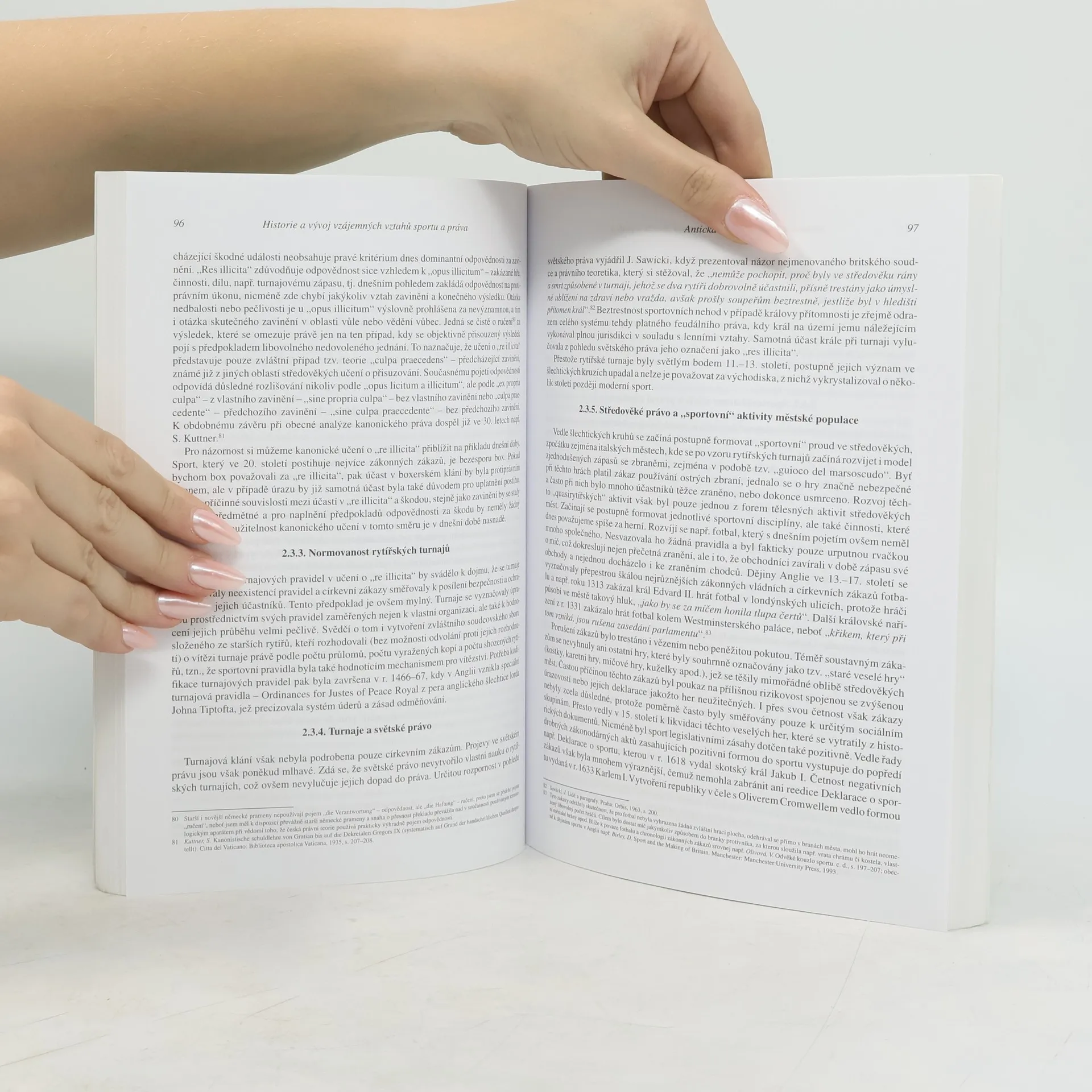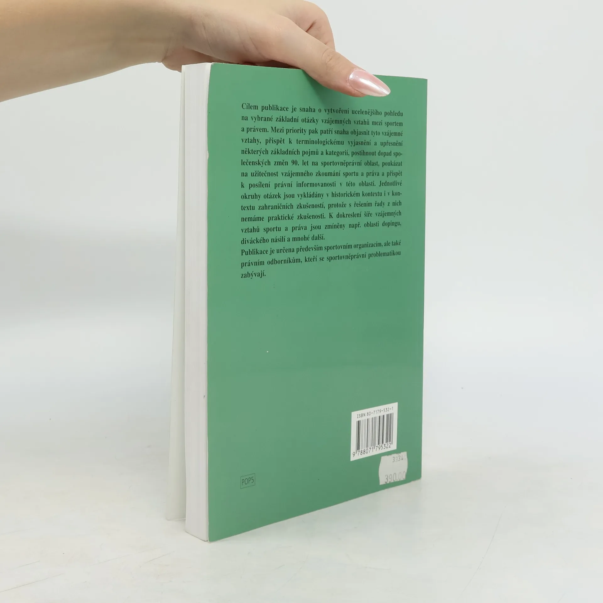 Publikace přináší ucelenější pohled na vybrané základní otázky vztahů mezi sportem a právem. Mezi její priority pak patří snaha objasnit tyto vzájemné vztahy, přispět k terminologickému vyjasnění a upřesnění některých základních pojmů a kategorií a postihnout dopad společenských změn 90. let na oblast sportovního práva. Autor si ve své publikaci všímá užitečnosti vzájemného zkoumání sportu a práva. Jednotlivé okruhy otázek jsou vyloženy v kontextu historickém i zahraničních zkušeností. K dokreslení šíře vzájemných vztahů sportu a práva nechybí v knize ani problematika dopingu či diváckého násilí.