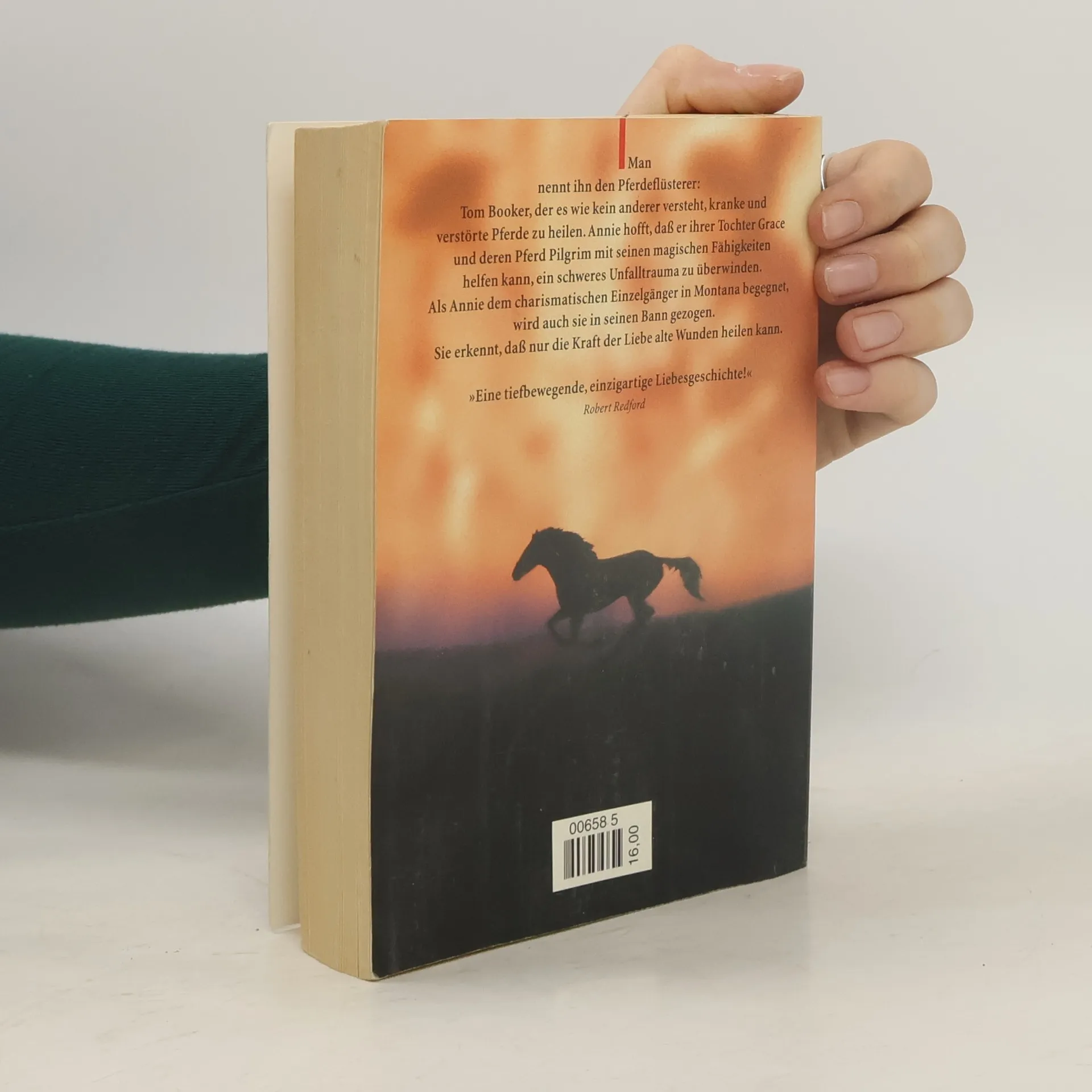 Der erfolgreichste Roman der letzten Jahre jetzt erstmals im Taschenbuch: Man nennt ihn den Pferdeflüsterer: Tom Booker, den Einzelgänger, der es wie kein anderer versteht, kranke und verstörte Pferde zu heilen. Auch Annie hofft, daß er ihrer Tochter Grace und deren Pferd Pilgrim mit seinen magischen Fähigkeiten helfen kann, ein schweres Unfalltrauma zu überwinden. Die Begegnung mit dem Einzelgänger Tom Booker wird das Leben beider Frauen jedoch für immer verändern...