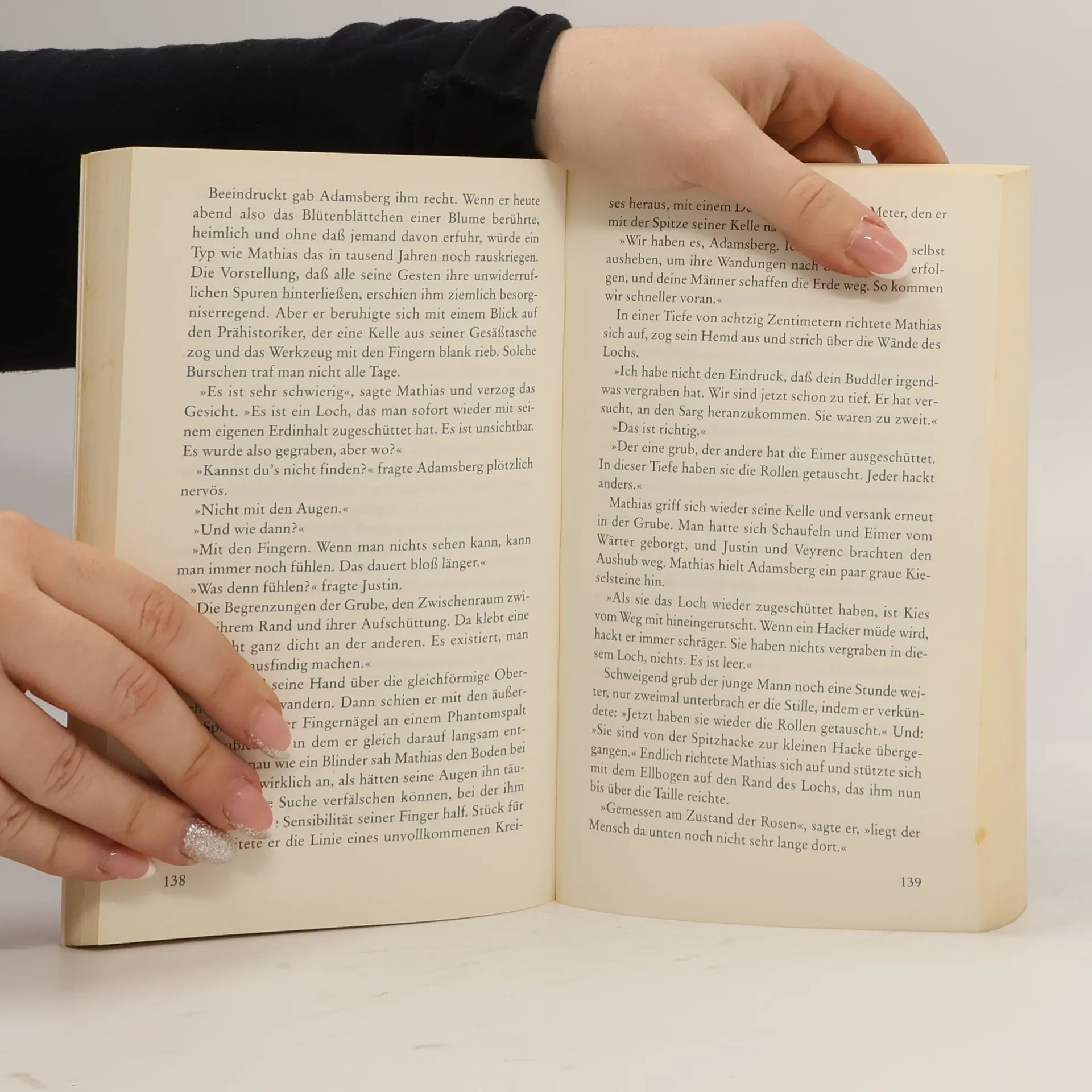 Adamsberg hat ein altes, kleines Haus mitten in Paris erworben. Doch in dem Haus spukt es, sagt der Nachbar. Der Schatten einer männermordenden Nonne aus dem 18. Jahrhundert schlurft des nachts über den Dachboden. Gehört hat der Kommissar das schon, aber was macht ihm das aus, wo er es doch mit viel gegenwärtigeren, furchtbaren Schatten zu tun hat. Einem zum Beispiel, der in einer Pariser Vorstadt zwei kräftigen Männern mit einem Skalpell die Kehle durchgeschnitten hat. Was keiner außer ihm sieht: Beide haben Erde unter den Fingernägeln. Wonach haben sie gegraben, das sie das Leben kostete? ... Vargas' neues Buch ist nicht nur, wie immer, ein überaus spannender, hochdramatischer Kriminalroman - er ist reine Literatur.