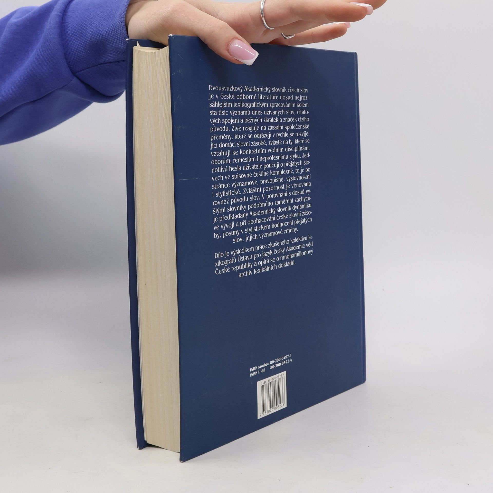 Dvousvazkový Akademický slovník cizích slov je v české odborné literatuře dosud nejrozsáhlejším lexikografickým zpracováním kolem sta tisíc významů dnes užívaných slov, citátových spojení a běžných zkratek cizího původu. Živě reaguje na zásadní společenské přeměny, které se odrážejí v rychle se rozvíjející domácí slovní zásobě, zvláště na ty, které se vztahují ke konkrétním vědním disciplínám, oborům řemeslům i neprofesnímu styku. Jednotlivá hesla uživatele poučují o přejatých slovech ve spisovné češtině komplexně, to je po stránce významové, pravopisné, výslovnostní i stylistické. Zvláštní pozornost je věnována rovněž původu slov.... celý text