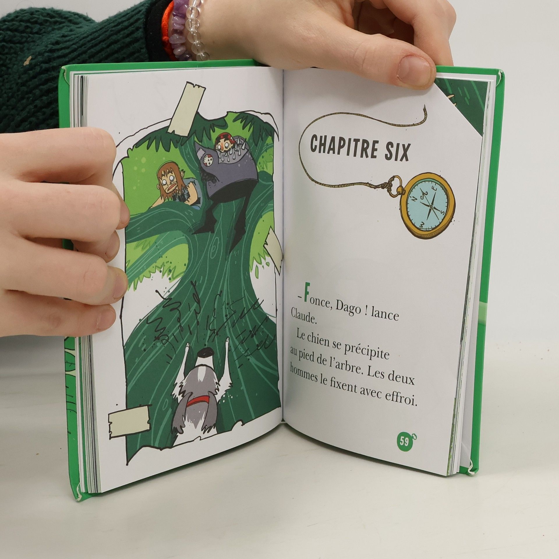 Par un après-midi caniculaire, les Cinq s'installent à l'ombre d'un arbre pour faire la sieste tandis que Dagobert s'en va chasser les lapins. Pendant son absence, deux bandits surgissent et dissimulent leur butin dans l'arbre. Les enfants, qui ont tout vu, ont juste eu le temps de se cacher. Alors que Dagobert revient vers sa maîtresse, Claude parvient à lui faire signe de prévenir les policiers qui passent non loin. Grâce aux Cinq, les bandits sont arrêtés !