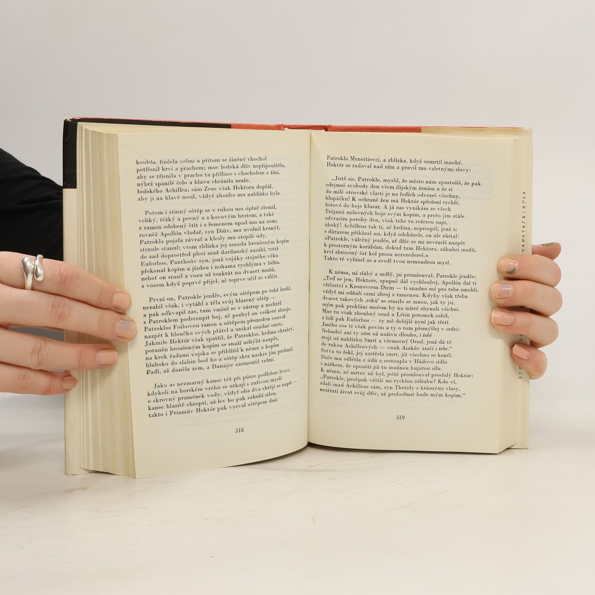 Epos o trojské válce, zobrazující ve 24 zpěvech dobrodružství, válečné i milostné příběhy Agamemmona, Achillea, Odyssea, Parida, Heleny, Hektora aj. i svět olympských bohů, vychází v novém, moderním překladu. Na obálce barevná reprodukce řeckého talíře zdobeného malířem Epiktétem.Obsah: Příčinou války byl únos krásné Heleny, manželky spartského krále Meneláa, synem trojského krále Priama, kralevicem Paridem. Meneláos se svým bratrem Agamemnonem zorganizoval odvetné tažení řeckých kmenů proti Tróji. Epos líčí události posledního, desátého roku války, které vyjadřují hněv Achilleův. Řek Achilleus, jemuž je předurčena velká sláva a blízká smrt, se odmítá zúčastnit dalších bojů, neboť Agamemnon mu odňal ukořistěnou otrokyni Bríseovnu. Uražený Achilles půjčí svou zbroj příteli Patroklovi, ten je však zabit trojským hrdinou Hektorem. V souboji Meneláa s únoscem Paridem Paris sice umírá, nakonec je však zachráněn bohyní Afroditou. Vyvrcholením eposu je vylíčení souboje Achillea, mstícího smrt přítele Patrokla, s Hektorem, který končí Achilleovým vítězstvím a potupou zabitého Hektora, vláčeného kolem trojských hradeb a nakonec vydaného králi Priamovi. 01-083-80