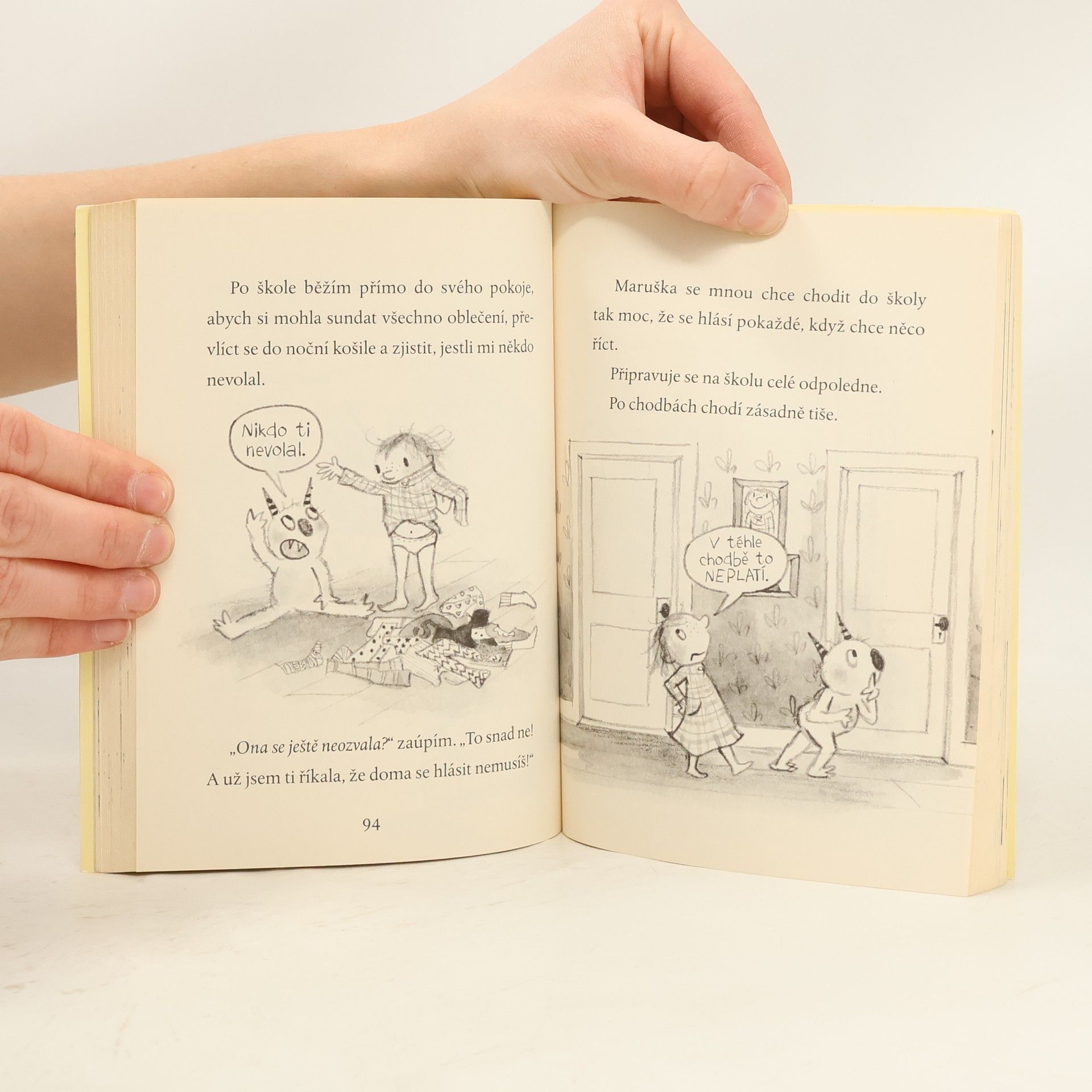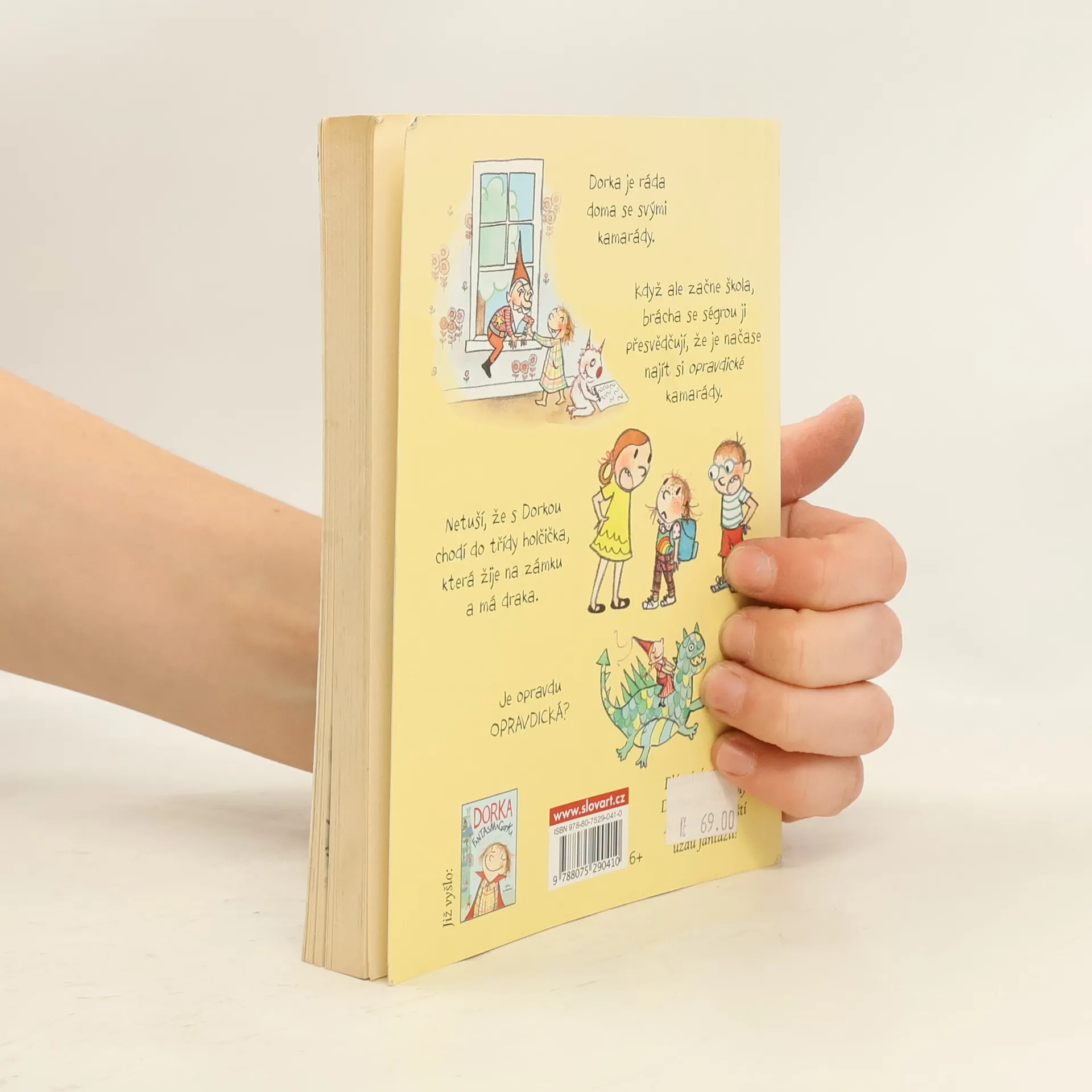 Dorka, malá rošťanda s nezvladatelnou fantazií, si ráda hraje se svými vymyšlenými kamarády. Jenže teď, když jde do školy, jí sourozenci radí, aby je - a nejraději rovnou všechny své výmysly - nechala doma a jako správná velká holka se kamarádila s opravdovými dětmi. To ale nevědí, že do Dorčiny třídy chodí holčička, která žije na zámku a jako domácí zvířátko chová draka. Může být skutečná?