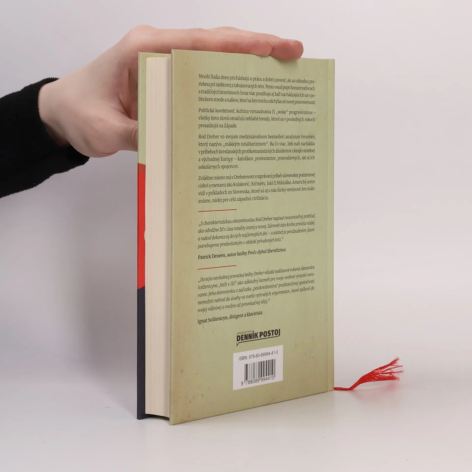 Mnohí ľudia dnes prichádzajú o prácu a dobrú povesť, ak sa náhodou prerieknu pri niektorej z tabuizovaných tém. Tento osud popri konzervatívcoch a tradičných kresťanoch čoraz viac postihuje aj ľudí nachádzajúcich sa v politickom strede a naľavo, ktorí sa len trochu odchýlia od novej pravovernosti. Politická korektnosť, kultúra vymazávania či „woke“ progresivizmus – všetky tieto slová označujú neblahé trendy, ktoré sa v posledných rokoch presadzujú na Západe. Rod Dreher vo svojom medzinárodnom bestselleri analyzuje fenomén, ktorý nazýva „mäkkým totalitarizmom“. Ba čo viac, liek naň nachádza v príbehoch kresťanských protikomunistických disidentov z krajín strednej a východnej Európy – katolíkov, protestantov, pravoslávnych, ale aj ich sekulárnych spojencov. Zvláštne miesto má v Dreherovom rozprávaní príbeh slovenskej podzemnej cirkvi s menami ako Kolaković, Krčméry, Jukl či Mikloško. Americký autor vidí v príkladoch zo Slovenska, ktoré sú aj u nás širšej verejnosti len málo známe, nádej pre celú západnú civilizáciu.