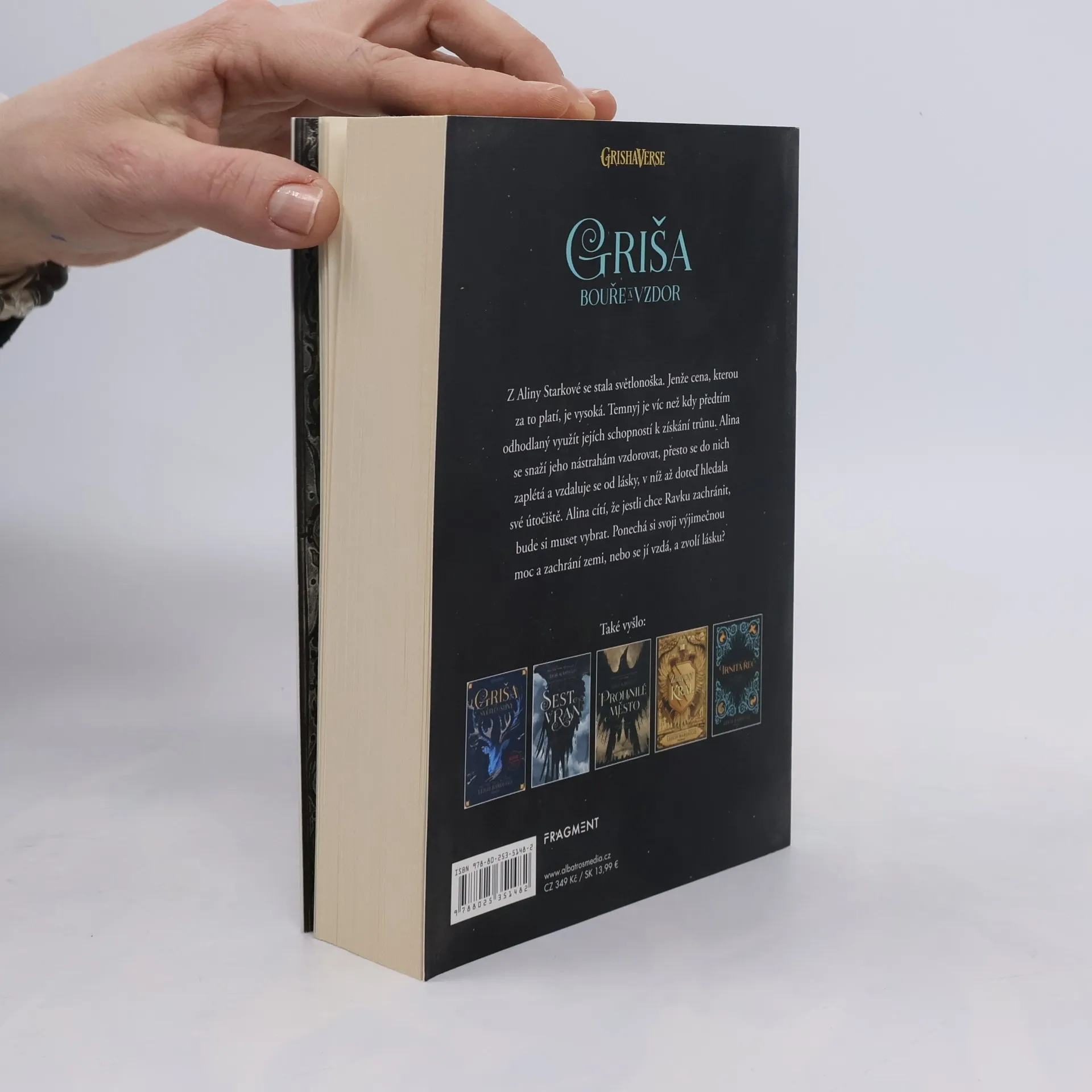 Na Alinu Starkovou se žene divoká bouře. Čeká ji vnitřní boj. Vyjde z něj jako vítěz, nebo jako poražený? Druhý díl světového bestselleru! Z Aliny Starkové se stala světlonoška. Jenže cena, kterou za to platí, je vysoká. Temnyj je víc než kdy předtím odhodlaný využít jejích schopností k získání trůnu. Alina se snaží jeho nástrahám vzdorovat, přesto se do nich zaplétá a vzdaluje se od lásky, v níž až doteď hledala své útočiště. Alina cítí, že jestli chce Ravku zachránit, bude si muset vybrat. Ponechá si svoji výjimečnou moc a zachrání zemi, nebo se jí vzdá, a zvolí lásku?