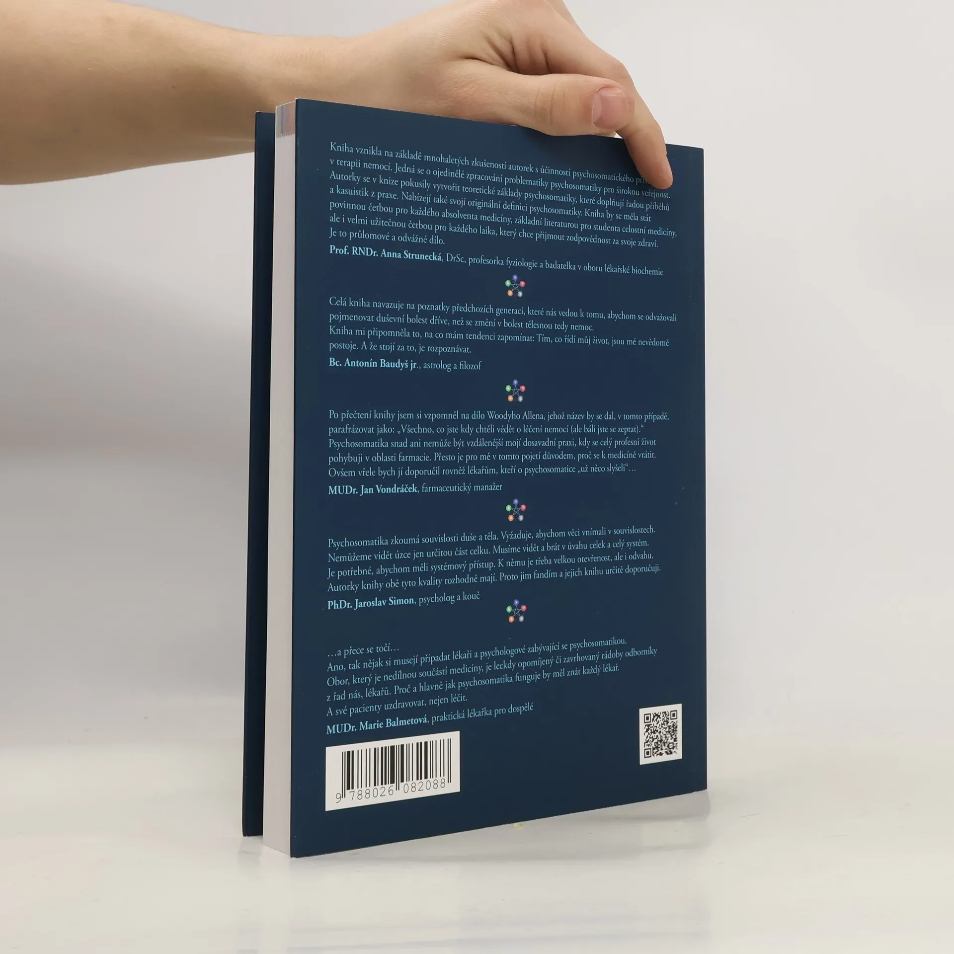 Vysvětluje co je psychosomatika a psychosomatické principy léčení. Kniha představuje 5 základních aspektů psychosomatického vnímání a jeho vztah k dalším oborům jako je západní i východní medicína, biologie, psychologie, fyzika i spirituální vědy. Kniha je členěna do 8 kapitol: Úvodní kapitola představuje základy psychosomatiky a systemického chápání dynamiky nemocí. Následujících 5 kapitol se věnuje pěti aspektům psychosomatického vnímání nemoci, tedy BIO-PSYCHO-SOCIO-SPIRITuálně-ENERGetickému modelu. 7. kapitola se zabývá vybranými tématy nemocí, nahlíženými z psychosomatického hlediska. 8. kapitola je zamyšlením nad rozdíly péče západní medicíny a psychosomatického přístupu. Mnoho příkladů z praxe představuje anonymní příběhy klientů využívajících psychosomatický přístupu v léčení. Obě zkušené autorky aktivně psychosomaticky pracují více jak 15 let a čerpají ze své bohaté praxe. Předmluvu napsal MUDr. Radkin Honzák.