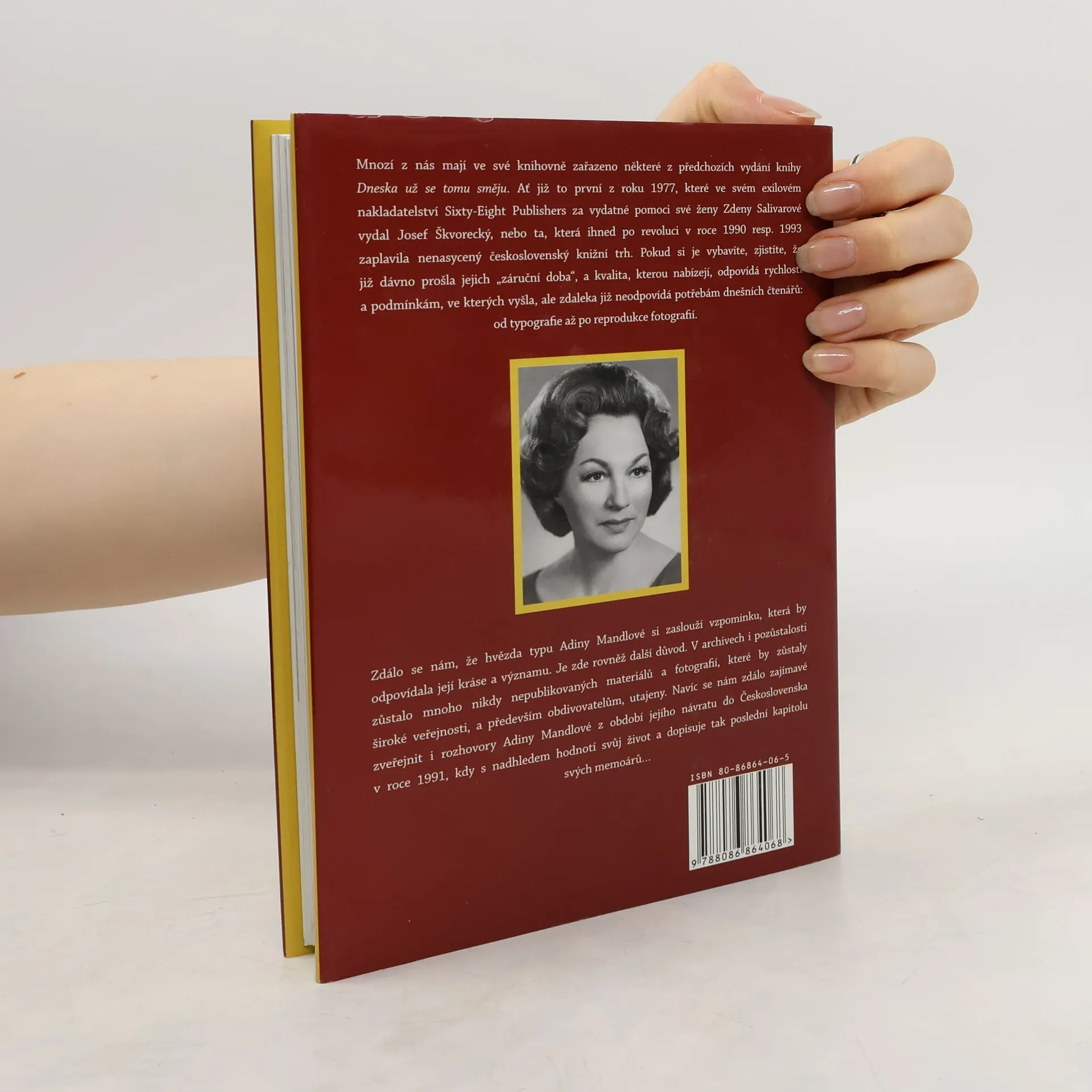 Někteří z nás mají ve své knihovně zařazeno některé z předchozích vydání knihy "Dneska už se tomu směju". Ať již to první z roku 1977, které ve svém exilovém nakladatelství "Sixty-Eight Publishers" vydal Josef Škvorecký, nebo ta, která ihned po změně režimu v roce 1990 resp. 1993 zaplavila nenasycený československý knižní trh. Pokud si je vybavíte, zjistíte, že již dávno prošla jejich "záruční doba", a kvalita, kterou nabízejí, odpovídá rychlosti a podmínkám, ve kterých vyšla, ale zdaleka již neodpovídá potřebám dnešních čtenářů: od typografie až po reprodukce fotografií. Zdálo se, že hvězda typu Anidy Mandlové si zaslouží vzpomínku, která by odpovídala její kráse a významu. Je zde rovněž další důvod. V archívech i pozůstalosti zůstalo mnoho nikdy nepublikovaných materiálů a fotografií, které by zůstaly široké veřejnosti, a především obdivovatelům, utajeny. Navíc se zdálo vydavateli zajímavé zveřejnit i rozhovory Adiny Mandlové z období jejího návratu do Československa v roce 1991, kdy s nadhledem hodnotí svůj život a dopisuje tak poslední kapitolu svých memoárů...