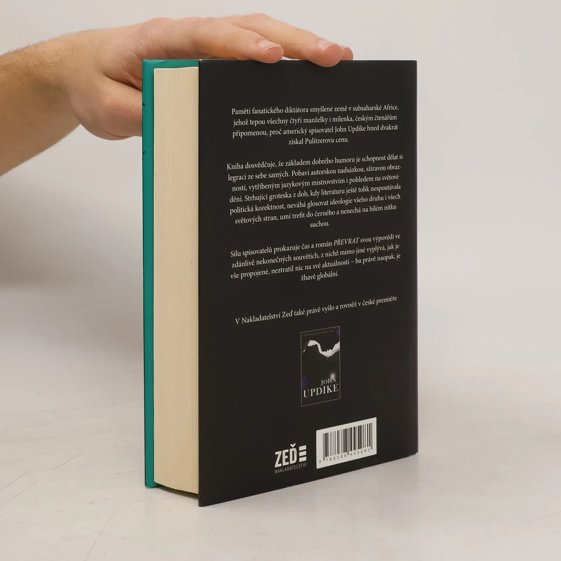 Paměti fanatického diktátora smyšlené země v subsaharské Africe, jehož tepou všechny čtyři manželky i milenka, českým čtenářům připomenou, proč americký spisovatel John Updike hned dvakrát získal Pulitzerovu cenu.Kniha dosvědčuje, že základem dobrého humoru je schopnost dělat si legraci ze sebe samých. Pobaví autorskou nadsázkou, sžíravou obrazností, vytříbeným jazykovým mistrovstvím i pohledem na světové dění. Strhující groteska z dob, kdy literaturu ještě tolik nespoutávala politická korektnost, neváhá glosovat ideologie všeho druhu i všech světových stran, umí trefit do černého a nenechá na bílém nitku suchou.Sílu spisovatelů prokazuje čas a román Převrat svou výpovědí ve zdánlivě nekonečných souvětích, z nichž mimo jiné vyplývá, jak je vše propojené, neztratil nic na své aktuálnosti – ba právě naopak, je žhavě globální.