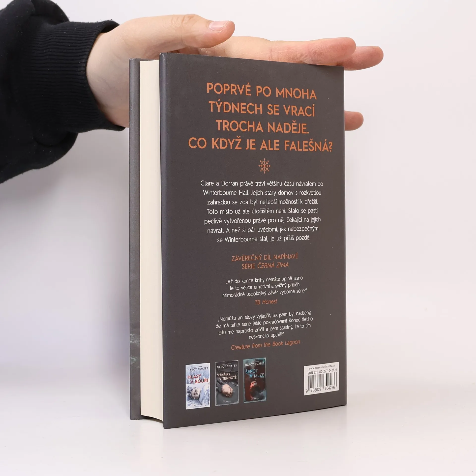 Čtvrtý, závěrečný díl napínavé bestsellerové série Černá zima.Studený a drsný svět kolem Clare a Dorrana se stále mění. Každý další den ho stále více a více pokřivuje a posouvá ty, kteří přežili, blíže k vyhynutí. Tentokrát v něm však poprvé svitla naděje.Clare a Dorran se rozhodli vrátit domů do Winterbourne Hall. Bude to náročná, ale životně důležitá cesta. Lidstvo potřebuje více bezpečných útočišť – oblastí, kde si jejich obyvatelé dokážou vypěstovat vlastní potraviny, aniž by na sebe přitahovali pozornost Vyzáblých – a staré rodinné sídlo uprostřed hlubokých lesů k tomu nabízí ideální příležitost.Jejich bývalý domov už ale není oním útočištěm, k němž se upínali. Stala se z něj nebezpečná past, kterou někdo pečlivě nachystal právě jim, a nyní už jen číhá, až se do ní chytnou. Až si Clare a Dorran uvědomí, jak nebezpečným se Winterbourne stal, dávno už může být pozdě.Boj o přežití pokračuje.