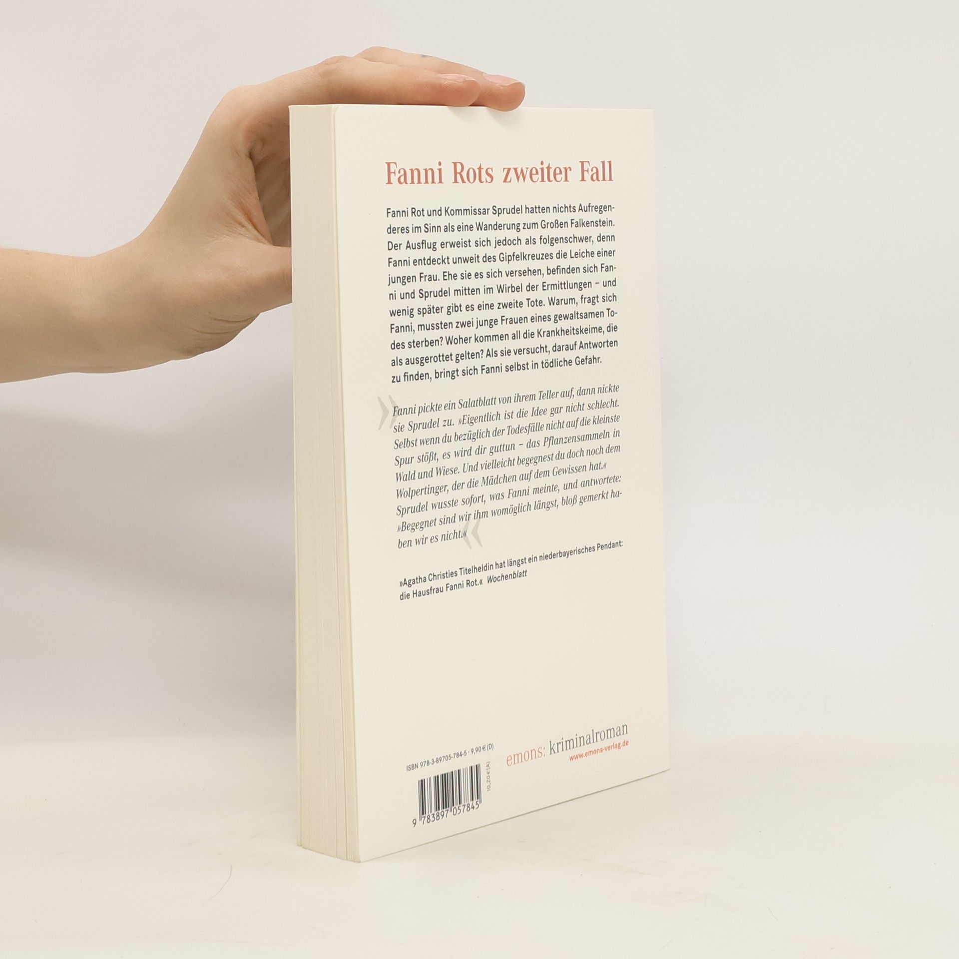 Fanni Rot und Kommissar Sprudel hatten nichts Aufregenderes im Sinn als eine Wanderung zum Großen Falkenstein. Der Ausflug erweist sich jedoch als folgenschwer, denn Fanni entdeckt unweit des Gipfelkreuzes die Leiche einer jungen Frau. Ehe sie es sich versehen, befinden sich Fanni und Sprudel mitten im Wirbel der Ermittlungen – und wenig später gibt es eine zweite Tote. Warum, fragt sich Fanni, mussten zwei junge Frauen eines gewaltsamen Todes sterben? Woher kommen all die Krankheitskeime, die als ausgerottet gelten? Als sie versucht, darauf Antworten zu finden, bringt sich Fanni selbst in tödliche Gefahr.