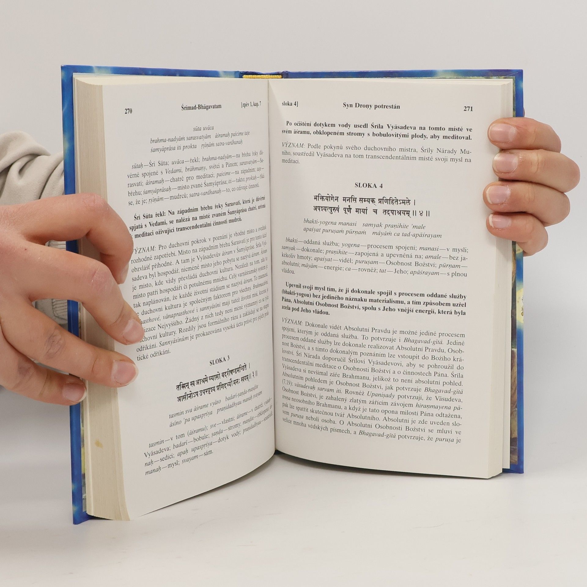 Nábožensko-filozofický text, který dává nahlédnout do indického duchovního odkazu. S původními sanskrtskými texty, přepisem do latinského písma, českými synonymy, překlady a podrobnými výklady.