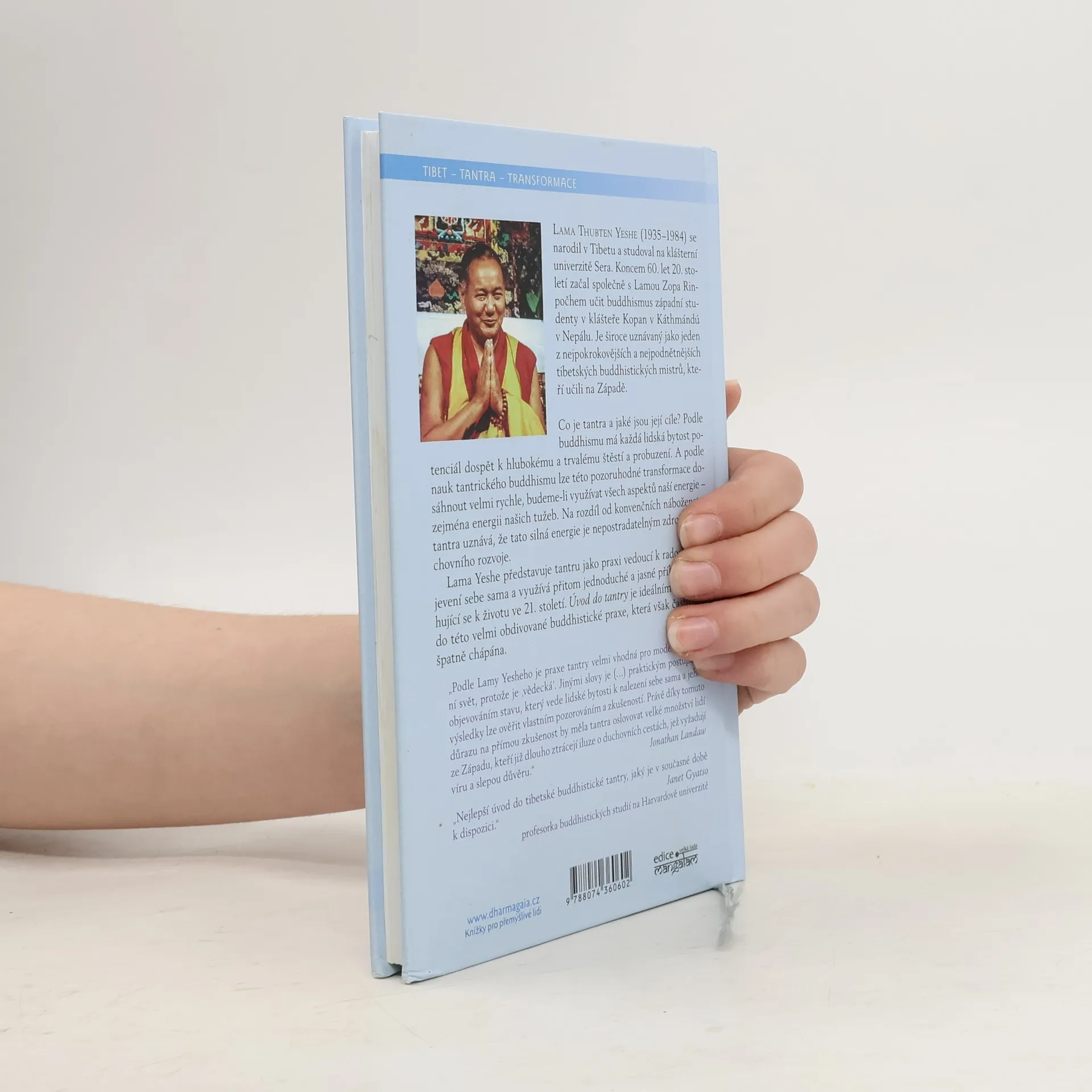 Co je tantra a jaké jsou její cíle? Podle buddhismu má každá lidská bytost potenciál dospět k hlubokému a trvalému štěstí a probuzení. A podle nauk tantrického buddhismu lze této pozoruhodné transformace dosáhnout velmi rychle, budeme-li využívat všech aspektů naší energie – zejména energii našich tužeb. Na rozdíl od konvenčních náboženství tantra uznává, že tato silná energie je nepostradatelným zdrojem duchovního rozvoje. Náš život je totiž tak neoddělitelně spojen s touhou, že její obrovskou energii můžeme využít k transformaci celého svého života. Lama Yeshe představuje tantru jako praxi vedoucí k radosti a objevení sebe sama a využívá přitom jednoduché a jasné příklady vztahující se k životu ve 21. století. Úvod do tantry je ideálním uvedením do této velmi obdivované buddhistické praxe, která však často bývá špatně chápána. S předmluvou Philipa Glasse.