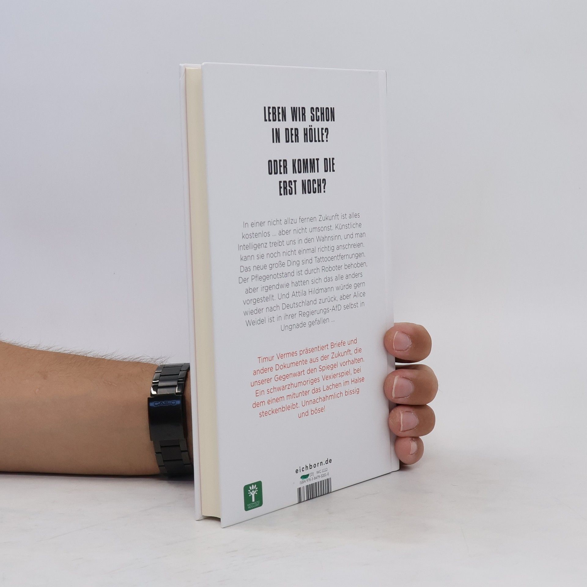 In einer dystopischen Zukunft, in der alles kostenlos, aber nicht umsonst ist, beleuchtet Timur Vermes mit schwarzem Humor die Absurditäten des Lebens. Künstliche Intelligenz wird als lästig empfunden, während Tattooentfernungen zum neuen Trend avancieren. Der Pflegenotstand wurde zwar durch Roboter gelöst, doch die Realität entspricht nicht den Erwartungen. Gleichzeitig versucht Attila Hildmann, nach Deutschland zurückzukehren, wird jedoch von der ehemaligen Bundesministerin Alice Weidel daran gehindert.