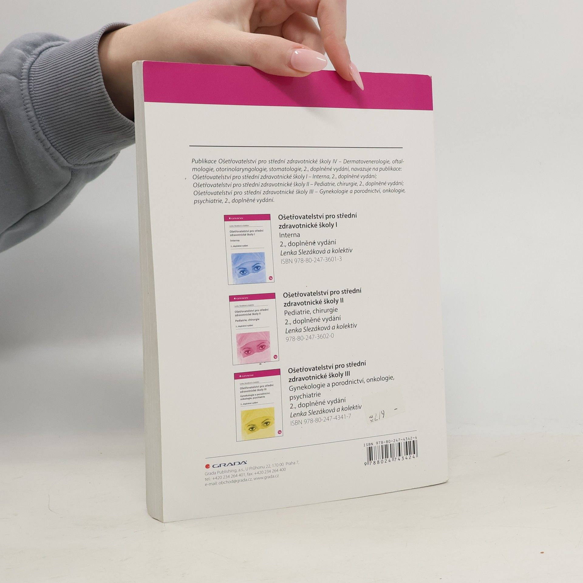 Druhé, doplněné vydání úspěšné základní učebnice ošetřovatelství uzavírá čtvrtým dílem studijní materiály pro žáky středních škol. Publikace je rozčleněna na celky zpracovávající problematiku ošetřovatelské péče v dermatovenerologii, očním lékařství, otorinolaryngologii astomatologii.