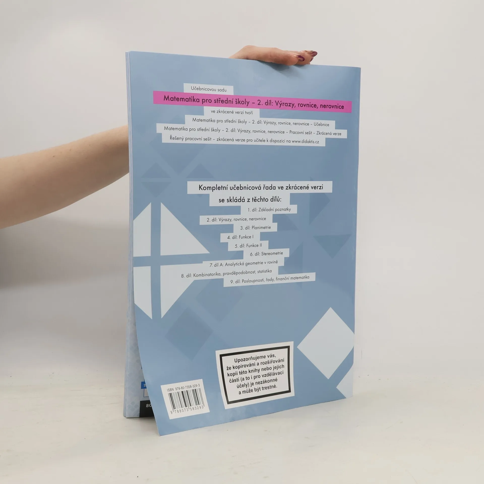 There are currently of book Matematika pro střední školy. 2. díl, Výrazy, rovnice a nerovnice : zkrácená verze : pracovní sešit (2020) in stock.