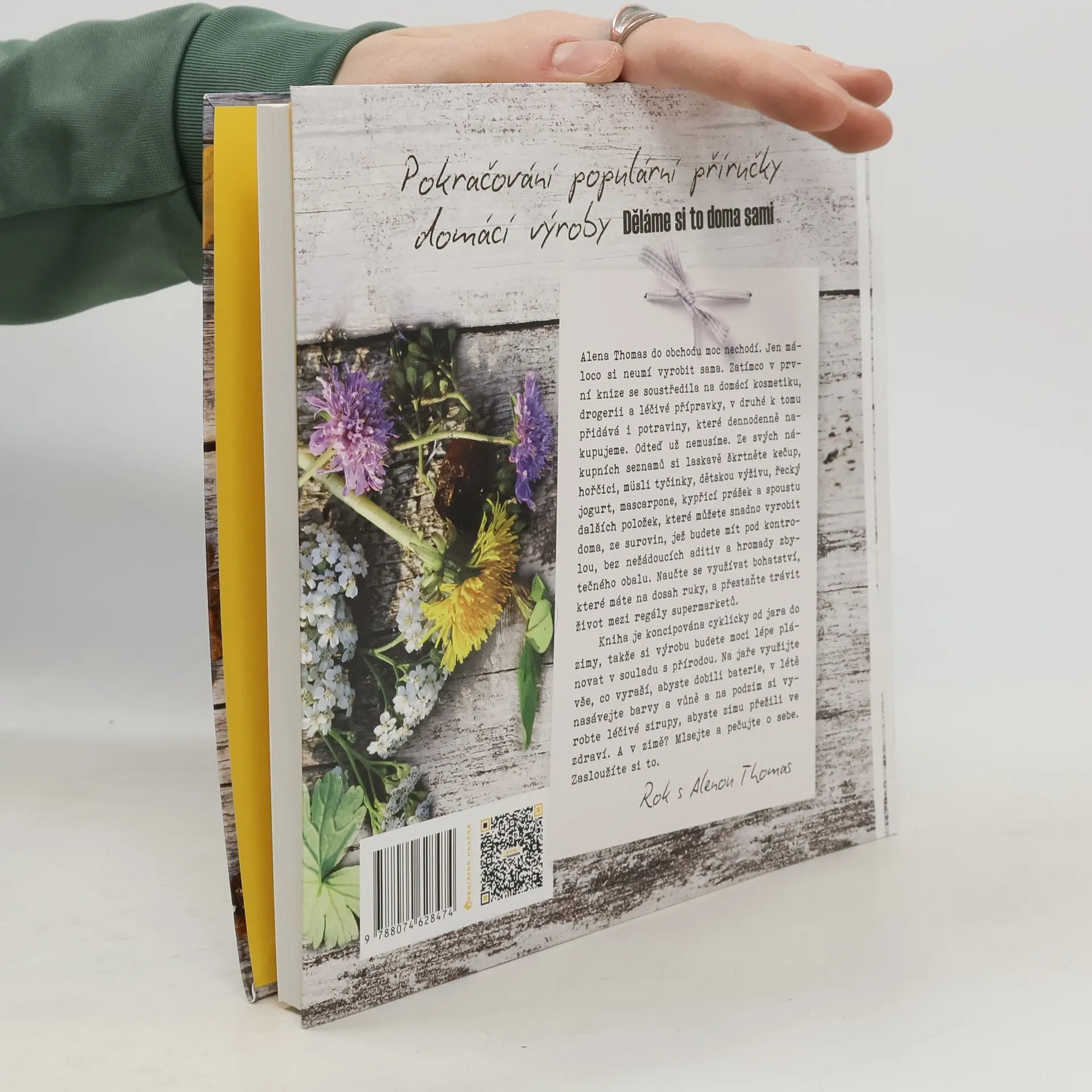 Pokračování populární příručky domácí výroby Děláme si to doma sami. Alena Thomas do obchodu moc nechodí. Jen máloco si neumí vyrobit sama. Zatímco v první knize se soustředila na domácí kosmetiku, drogerii a léčivé přípravky, v druhé rozšiřuje svůj záběr i na základní potraviny, které dennodenně nakupujeme. Odteď už nemusíme. Ze svých nákupních seznamů si laskavě škrtněte chleba, kečup, hořčici, povidla, dětské přesnídávky a spoustu dalších položek, které můžete snadno vyrobit doma, ze surovin, které budete mít pod kontrolou, a bez nežádoucích aditiv či konzervantů. Kniha je koncipována cyklicky od jara do zimy, takže si výrobu budete moci lépe plánovat v souladu s přírodou. Na podzim například vyrobíte léčivé sirupy, abyste zimu přežili ve zdraví, a na jaře zase využijete vše, co právě vyraší, abyste dobili baterie.