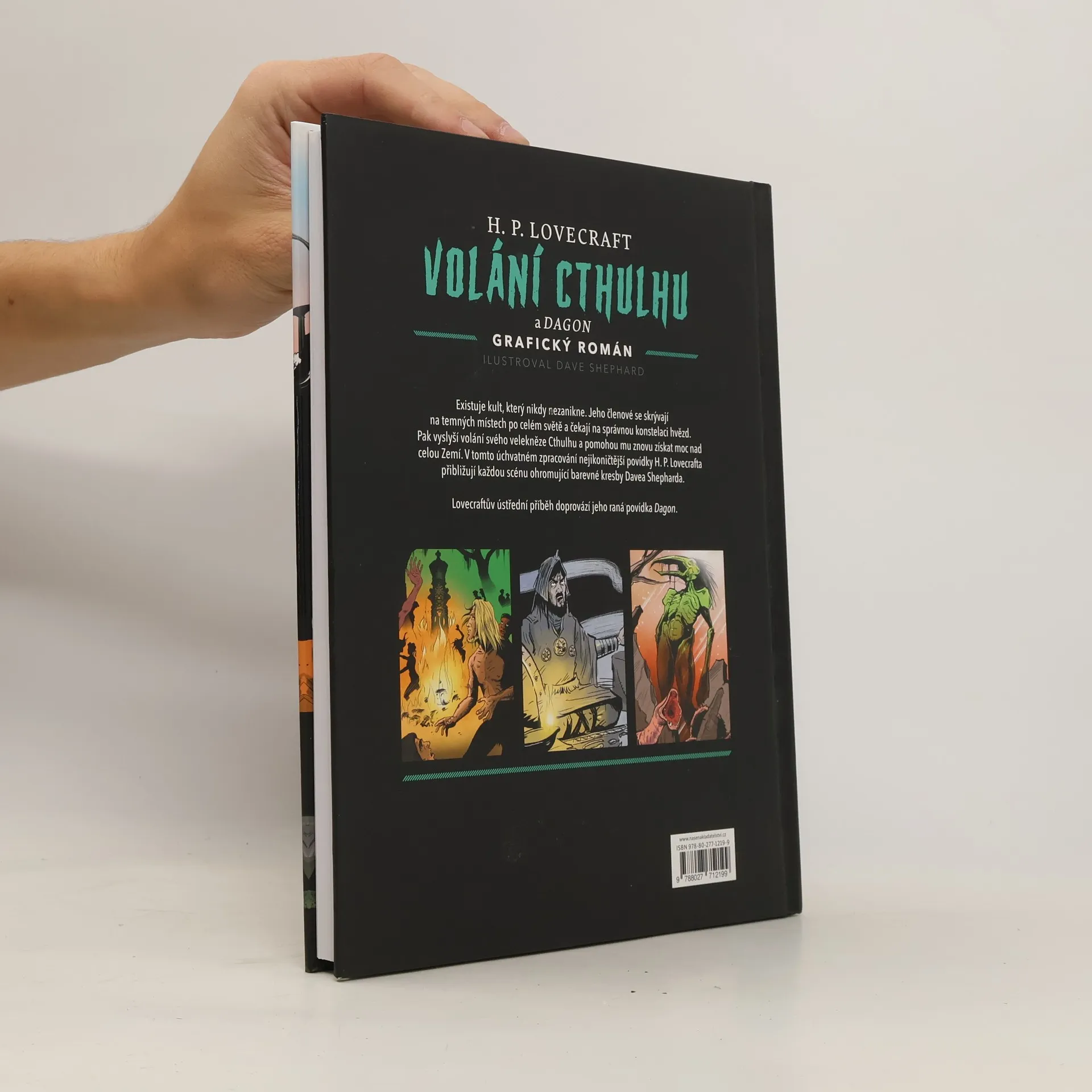 Ponořte se do temné, znepokojivé a bohatě ilustrované adaptace dvou příběhů z mytologie Cthulhu od H. P. Lovecrafta. V této adaptaci dvou slavných povídek z lovecraftovské mytologie Cthulhu plné zneklidňujících výjevů uchvátí ilustrátor Dave Shephard čtenáře příběhy o nadpřirozených monstrech tak mocných, že celé lidstvo je oproti nim malicherné. Volání Cthulhu a Dagon seznamují čtenáře s Velkými Starci, mocnými božstvy existujícími za hranicemi běžných dimenzí časoprostoru, jejichž fyzická podoba je pro obyčejného člověka jen těžko představitelná. Povídky v tomto krásném vydání v pevné vazbě jsou plné barevných detailů a jako vstupní brána do Lovecraftova světa vás naprosto pohltí. Adaptaci ale ocení i zarytí fanoušci Lovecrafta, jeho textů a seriálu Lovecraftova země z dílny HBO.