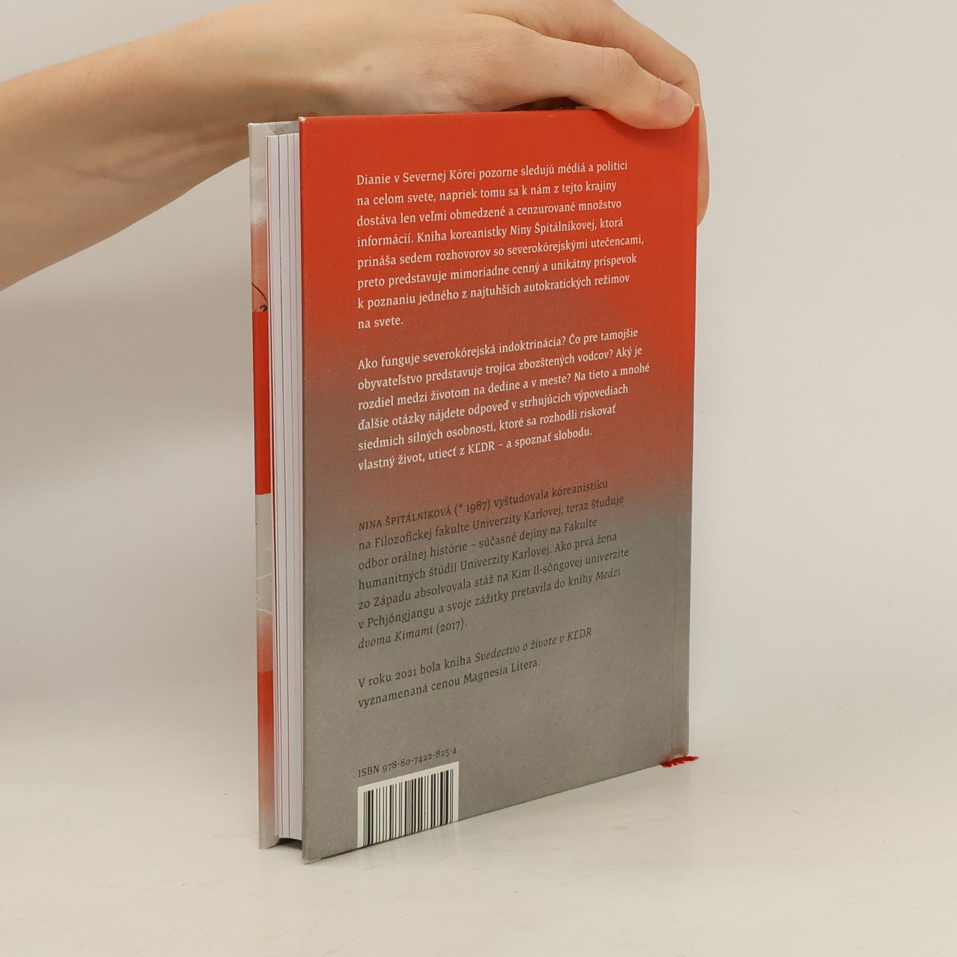 Dianie v Severnej Kórei pozorne sledujú médiá a politici na celom svete, napriek tomu sa k nám z tejto krajiny dostáva len veľmi obmedzené a cenzurované množstvo informácií. Kniha koreanistky Niny Špitálníkovej, ktorá prináša sedem rozhovorov so severokórejskými utečencami, preto predstavuje mimoriadne cenný a unikátny príspevok k poznaniu jedného z najtuhších autokratických režimov na svete. Ako funguje severokórejská indoktrinácia? Čo pre tamojšie obyvateľstvo predstavuje trojica zbožštěných vodcov? Aký je rozdiel medzi životom na dedine a v meste? Na tieto a mnohé ďalšie otázky nájdete odpoveď v strhujúcich výpovediach siedmich silných osobností, ktoré sa rozhodli riskovať vlastný život, utiecť z KĽDR - a spoznať slobodu. Nina Špitálníková (* 1987) vyštudovala kóreanistiku na Filozofickej fakulte Univerzity Karlovej, teraz študuje odbor orálnej histórie – súčasné dejiny na Fakulte humanitných štúdií Univerzity Karlovej. Ako prvá žena zo Západu absolvovala stáž na Kim Il-s?ngovej univerzite v Pchj?ngjangu a svoje zážitky pretavila do knihy Medzi dvoma Kimami (2017). V roku 2021 bola kniha Svedectvo o živote v KĽDR vyznamenaná cenou Magnesia Litera.