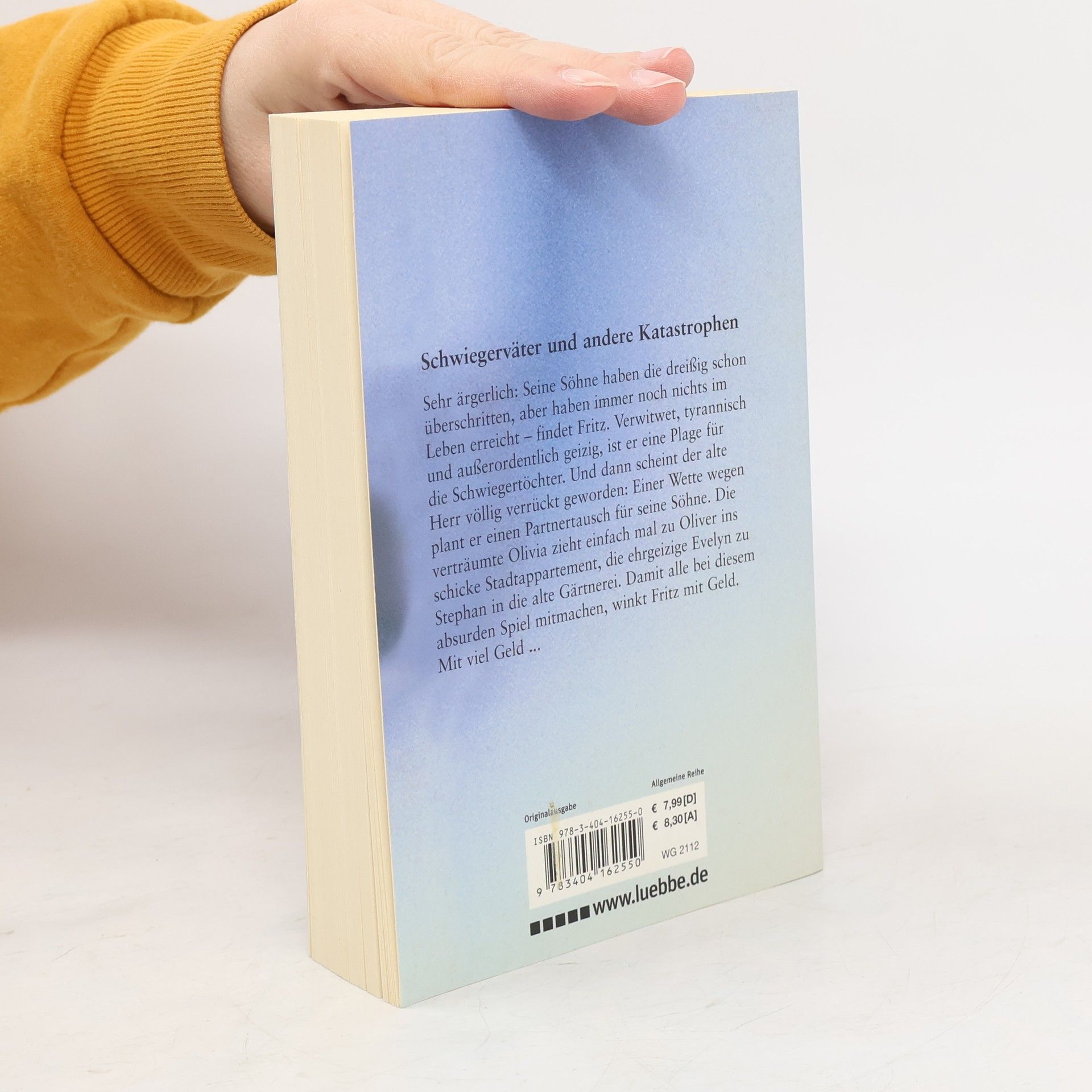 Sehr ärgerlich: Seine Söhne haben die dreißig schon überschritten, aber immer noch ist kein Enkelkind in Sicht. Fritz, verwitwet, tyrannisch und außerordentlich geizig, ist eine Plage für die Schwiegertöchter. Und dann scheint der alte Herr völlig verrückt geworden: Damit die Söhne endlich begreifen, was sie an ihren Frauen haben und wie gut sie zueinander passen, sollen sie ein halbes Jahr die Partner tauschen. Die verträumte Olivia zieht einfach mal zu Bastian ins schicke Stadtappartment, die ehrgeizige Conny zu Stephan in die alte Gärtnerei. – Damit alle bei diesem absurden Spiel mitmachen, winkt Fritz mit Geld. Mit viel Geld ...