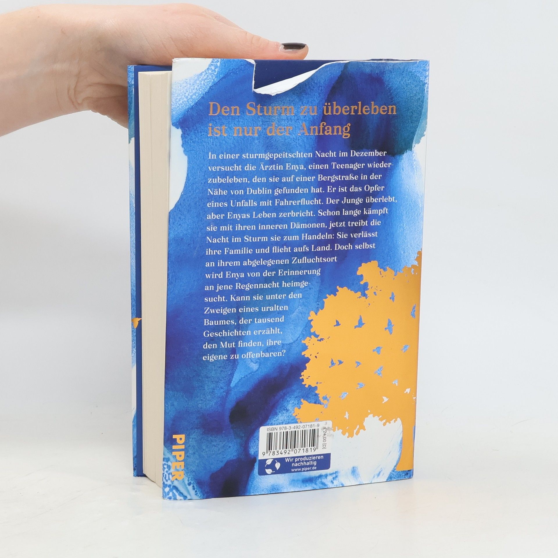 Den Sturm zu überleben ist nur der Anfang In einer verregneten Nacht im Dezember versucht die Ärztin Enya, einen Teenager wiederzubeleben, den sie auf einer Bergstraße in der Nähe von Dublin gefunden hat. Das Opfer einer Fahrerflucht. Der Junge überlebt, aber Enyas Leben zerbricht. Schon lange kämpft sie mit ihren inneren Dämonen, diese Nacht im Sturm treibt sie zum Handeln: Sie verlässt ihre Familie und flieht aufs Land. Doch selbst in ihrem abgelegenen Zufluchtsort wird Enya von der Regennacht heimgesucht. Kann sie unter den Zweigen eines uralten Baumes, der tausend Geschichten erzählt, den Mut finden, ihre eigene zu erzählen? Tiefgründig, voller Wärme und Klugheit erzählt Cecelia Ahern von einer Frau, die dem Aufruhr in ihrem Inneren zu entfliehen sucht – bis sie erkennt, dass sie dem Sturm nicht entgehen kann, sondern ihm mutig entgegengehen muss. Denn hinter dem Sturm wartet die Freiheit!